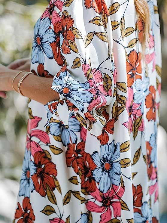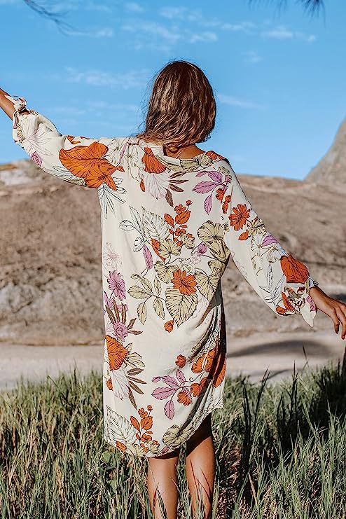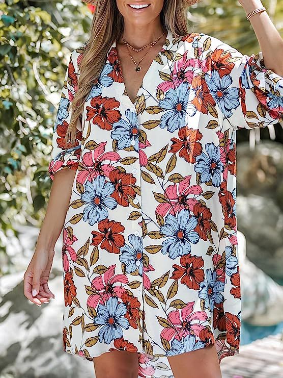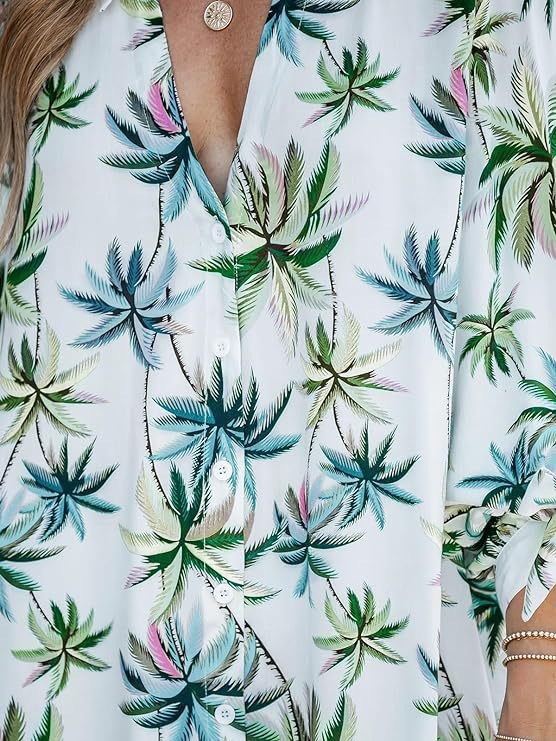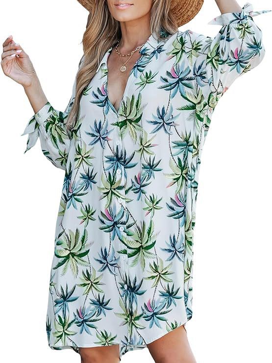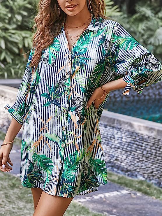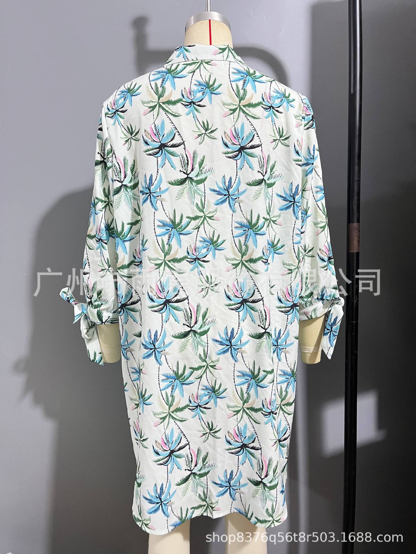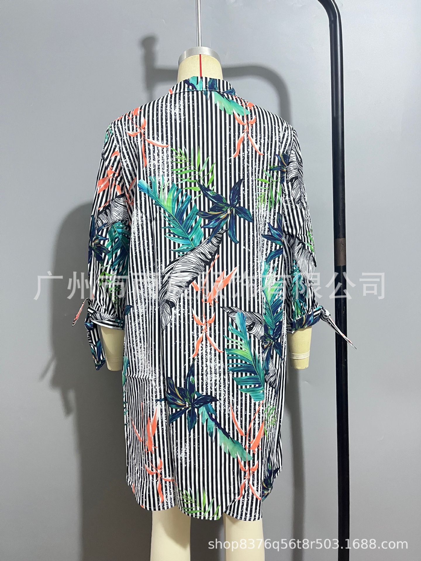 크로스 보더 2023 여름 새로운 유럽 및 미국 인쇄 7 소매 가디건 셔츠 아마존 비키니 비치 블라우스 여성스토어 가기