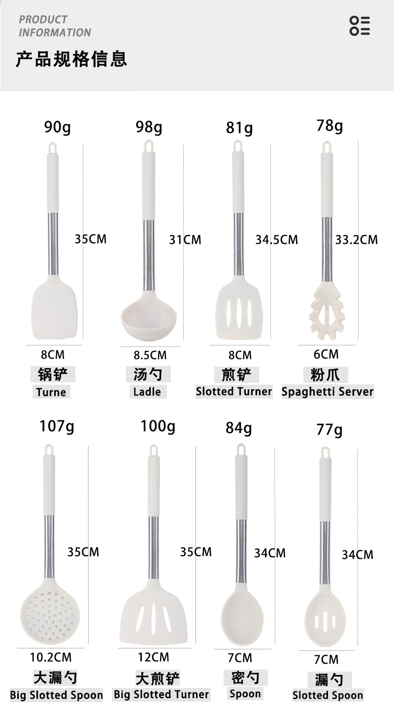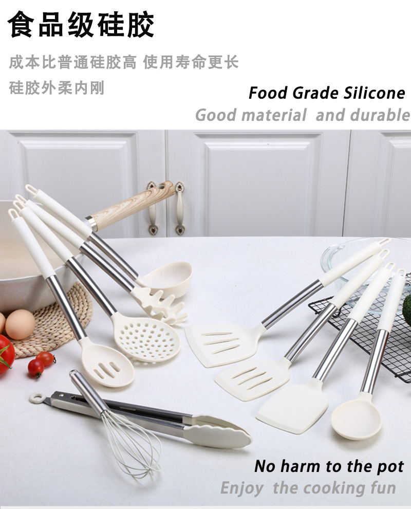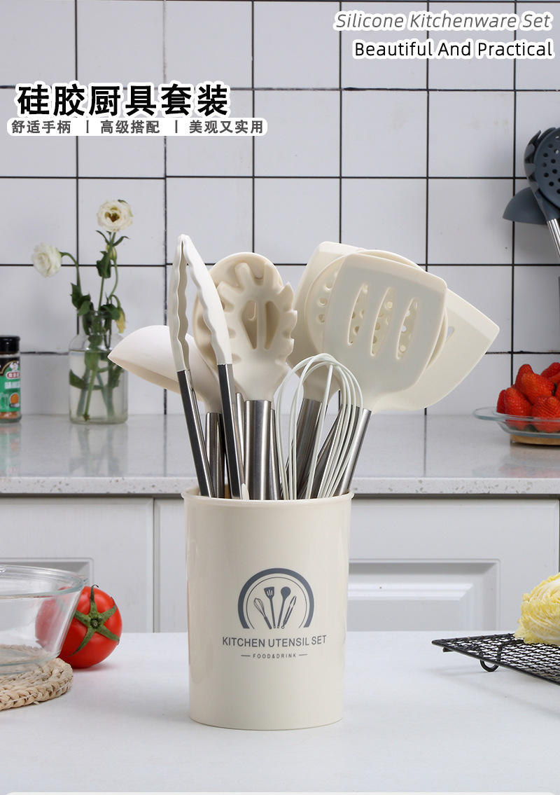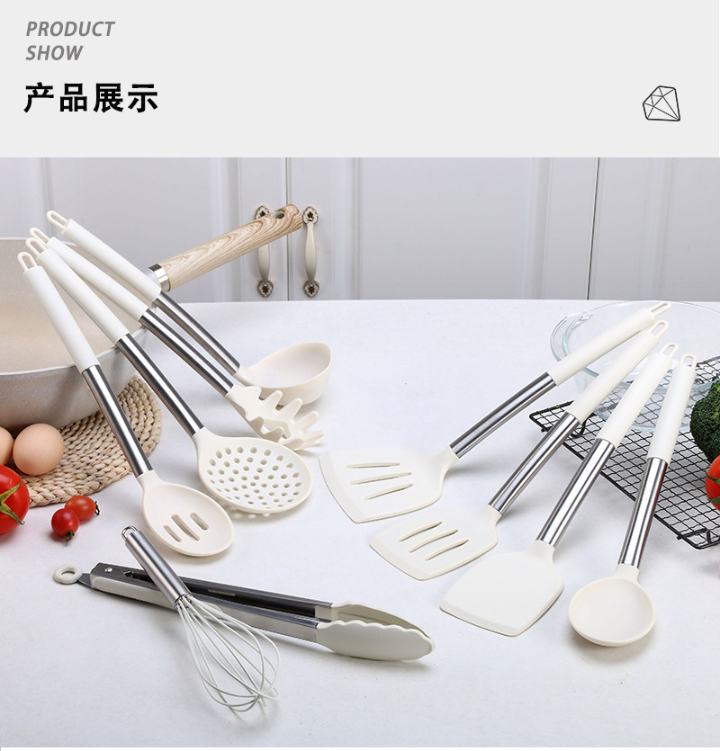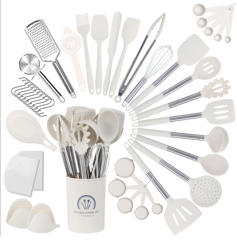 국경 43 조각 실리콘 요리 주방 용품 세트 고온 저항하는 주방 용품 비 스틱 스푼 삽 스테인레스 스틸 식기스토어 가기