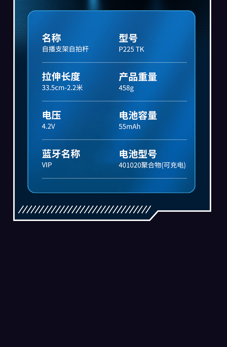 • P225 블루투스 셀카 스틱 [알루미늄 합금 튜브] (조명 없음)