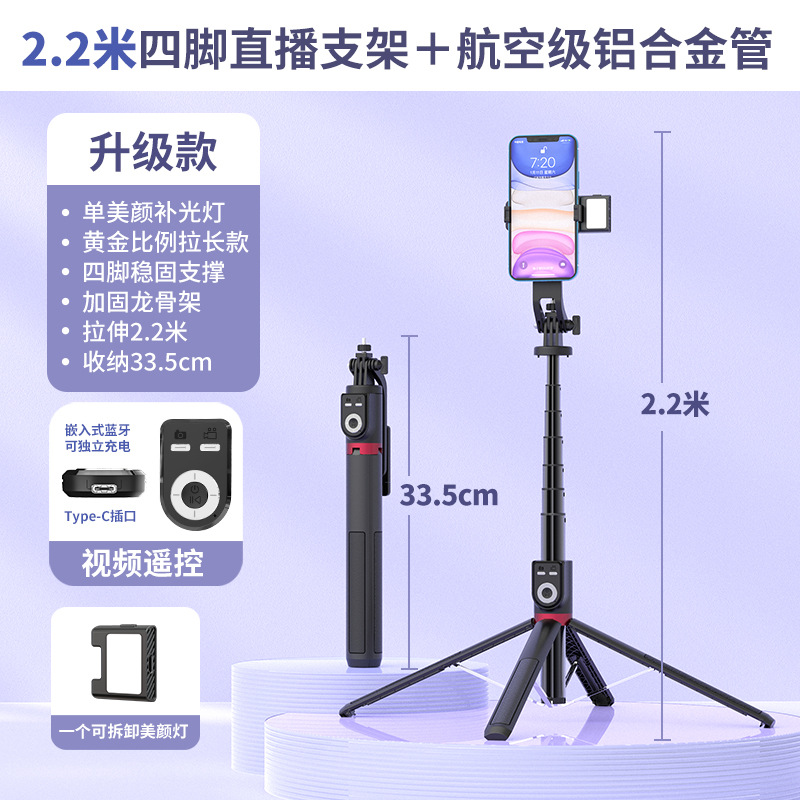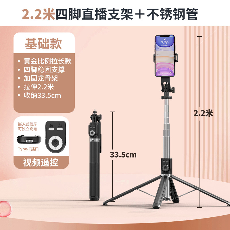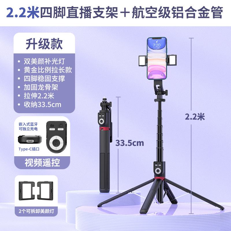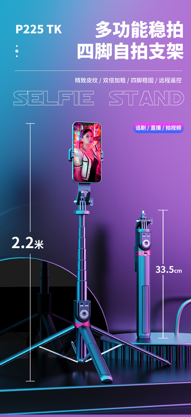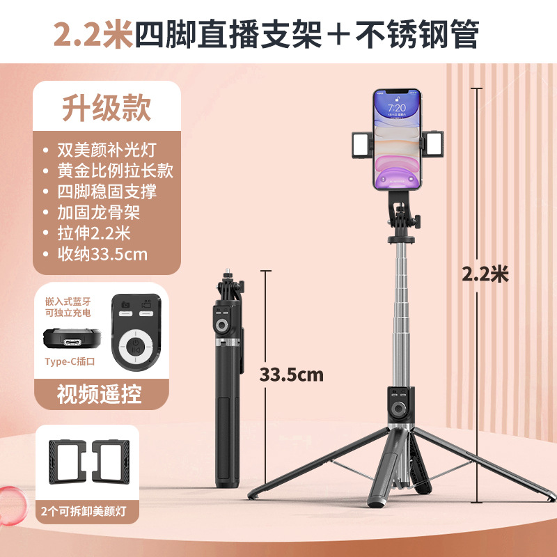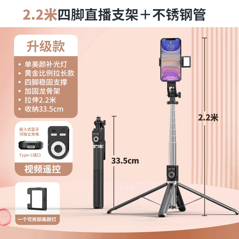 P225 블루투스 원격 제어 셀카봉 2.2m 플로어 라이브 방송 보조광 4피트 삼각대 P220 안정적인 카메라 스탠드
