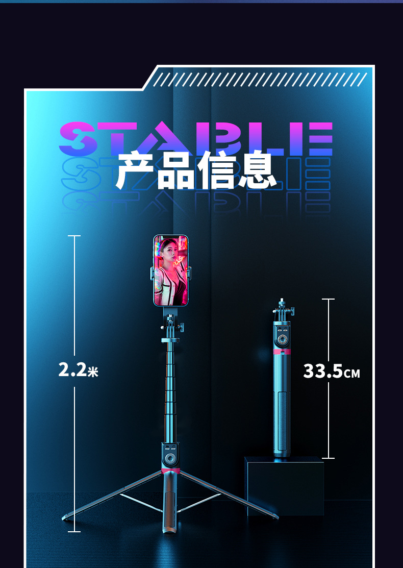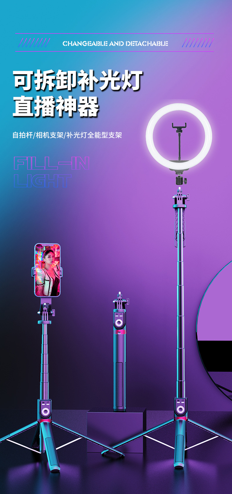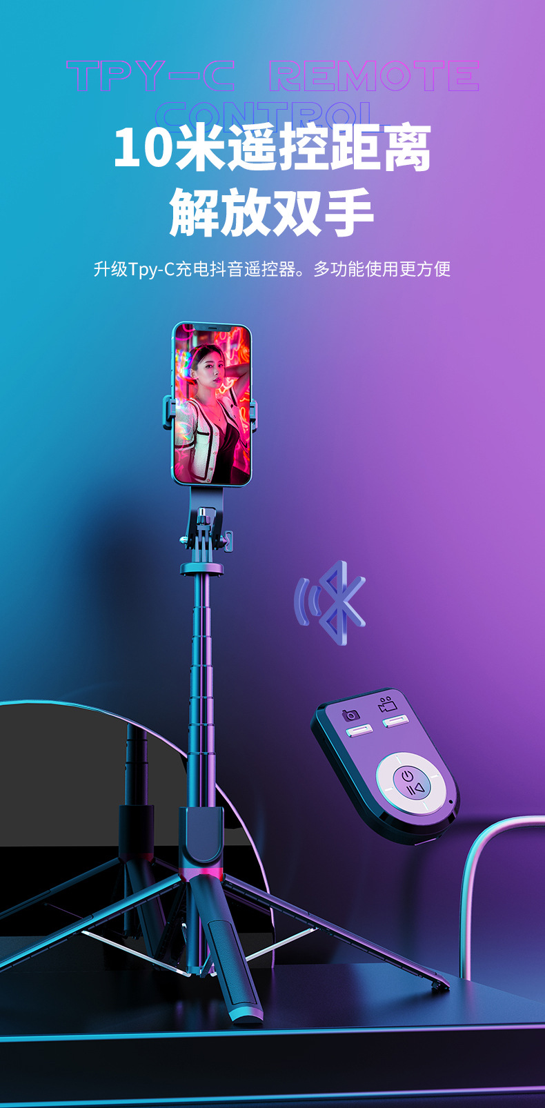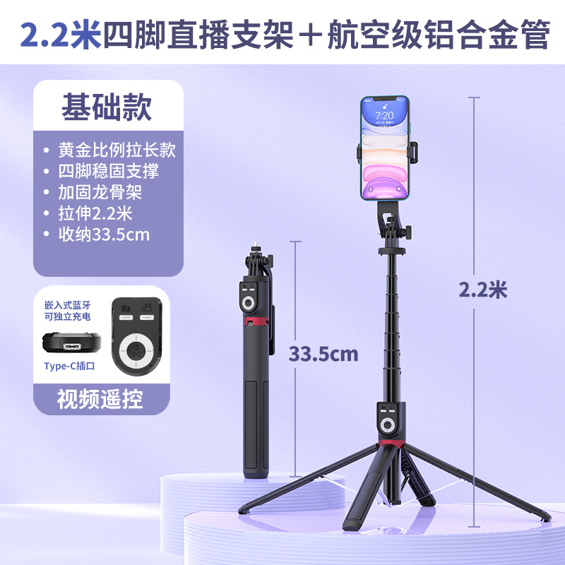 P225 블루투스 원격 제어 셀카봉 2.2m 플로어 라이브 방송 보조광 4피트 삼각대 P220 안정적인 카메라 스탠드