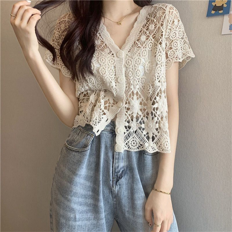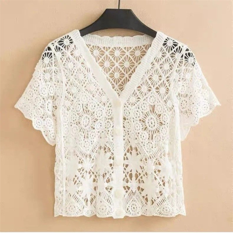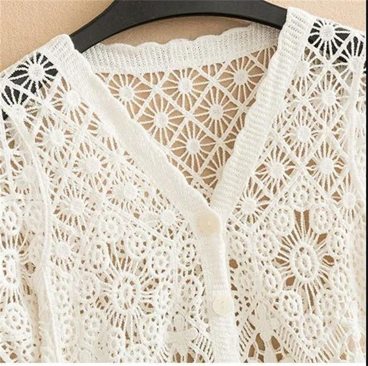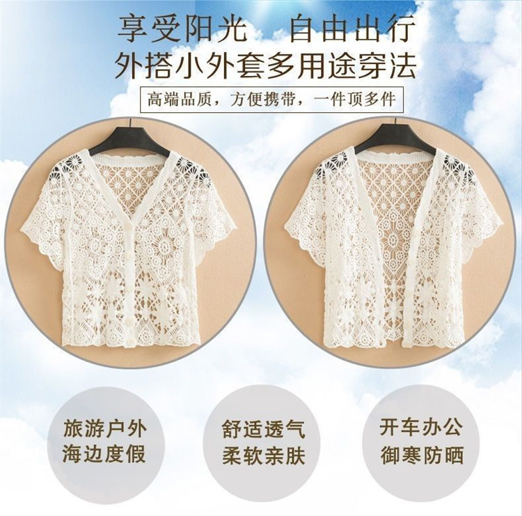 니트 자수 가디건 반팔 중공 크로 셰 뜨개질 겉옷 자외선 차단제 여성용 탑 코트 보헤미안 에스닉 스타일