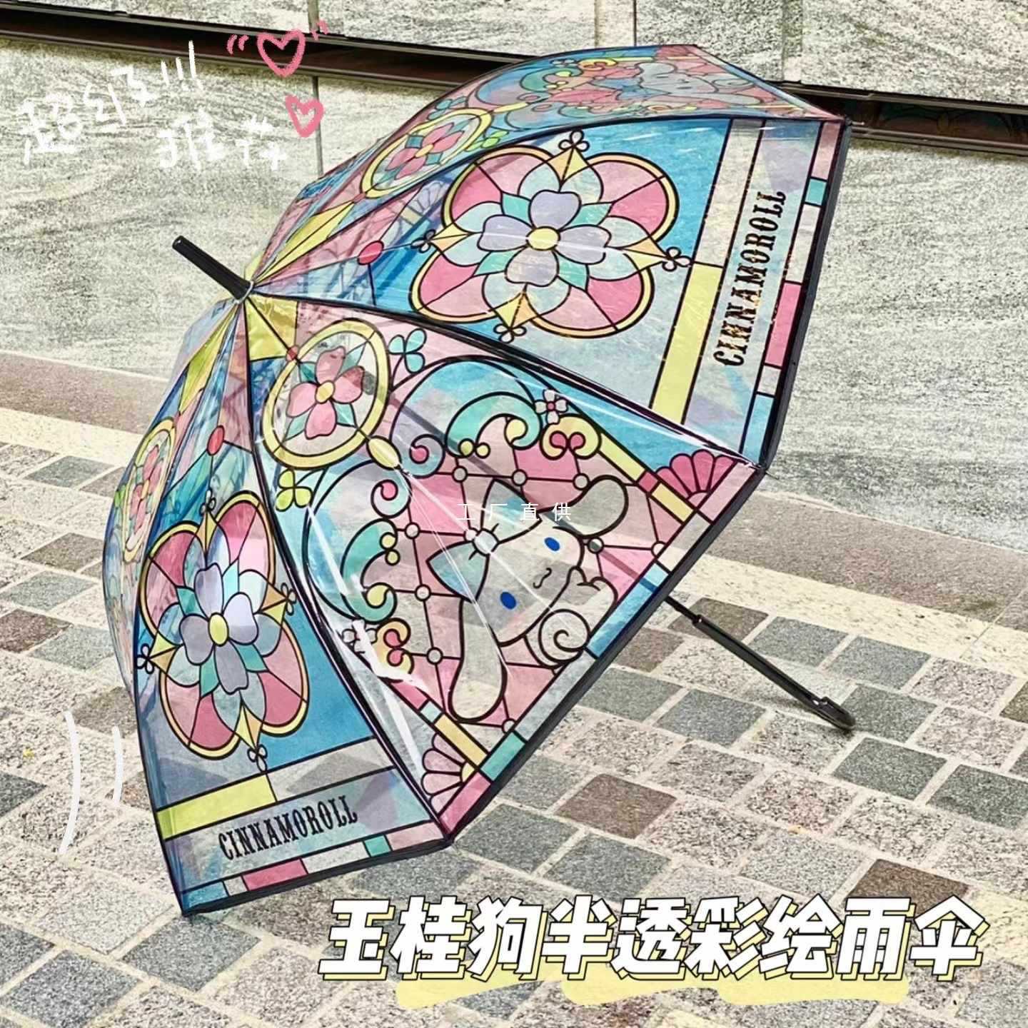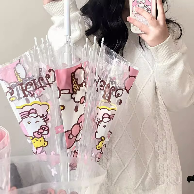 ZQ 우산 투명 어린이 소녀 산리오 긴 손잡이 높은 색 가치 유리 우산 양산 유귀 개 소녀