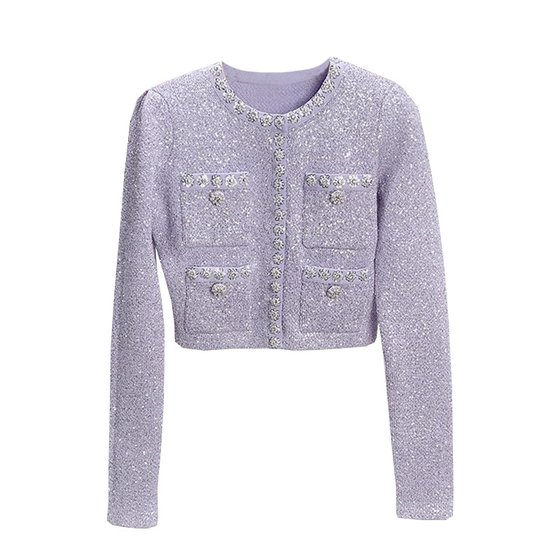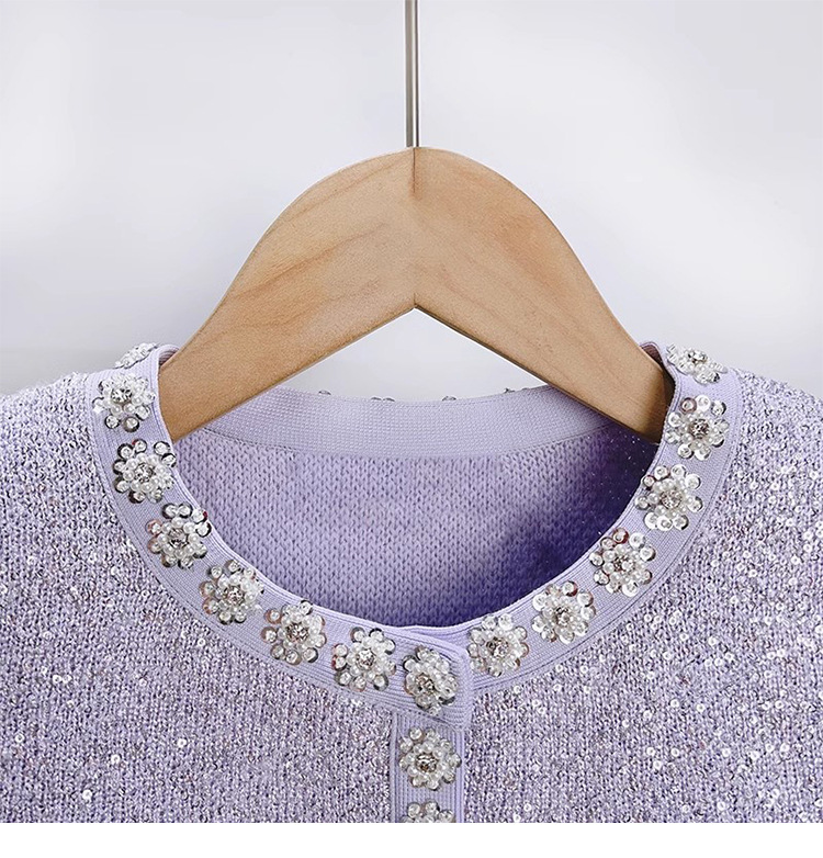 SP2023 이른 가을 새로운 중공업 라인 석 작은 샤넬 스타일 니트 가디건 여성의 짧은 주름 치마 세트스토어 가기
