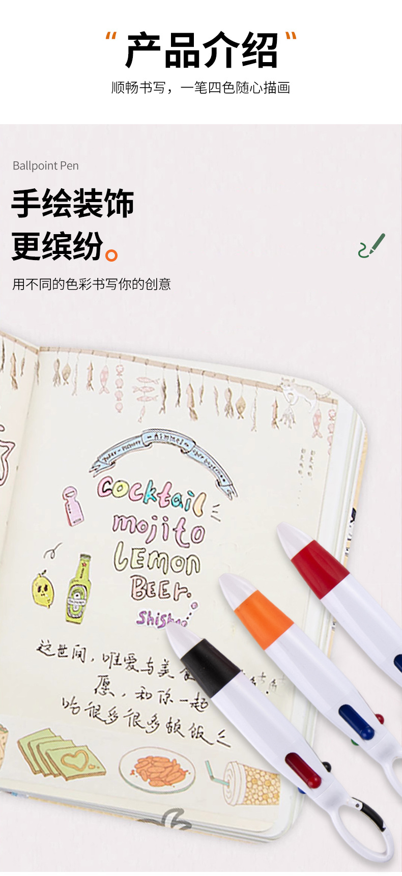 모란디 컬러 학생 매일 노트 숙제 전용 등산 버클 프레스 4 색 볼펜 제조 업체 도매스토어 가기