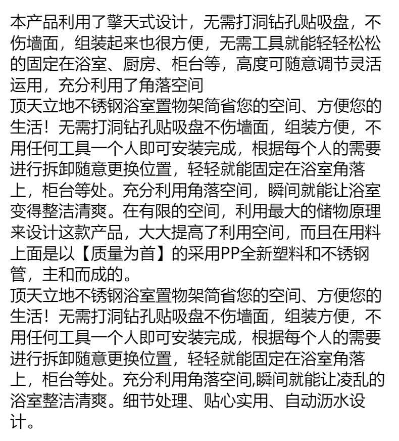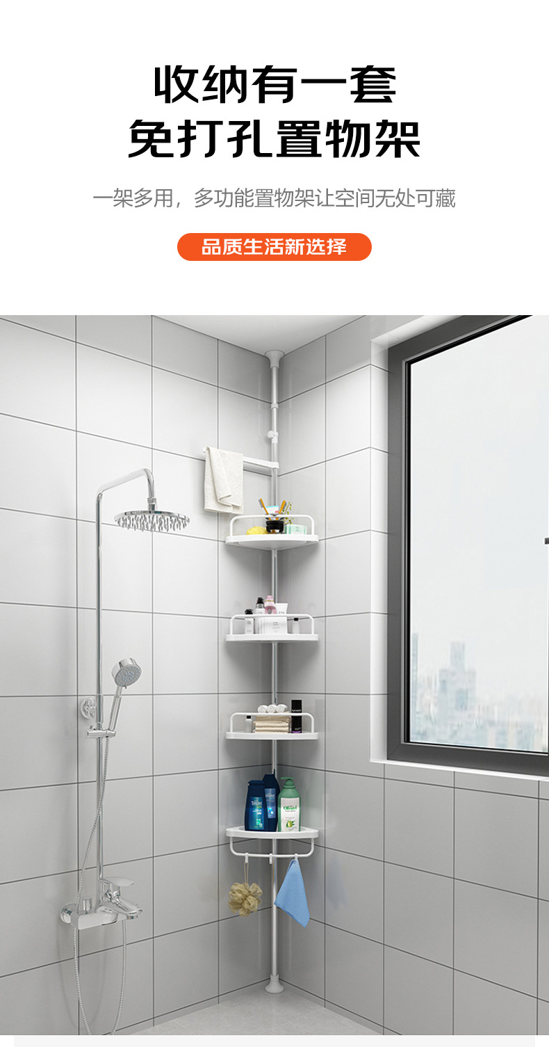 펀치 프리 화장실 욕실 랙 개폐식 스테인레스 스틸 삼각대 다기능 바닥 수납 랙스토어 가기