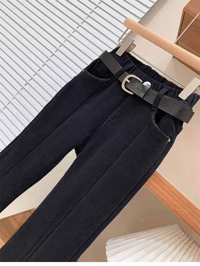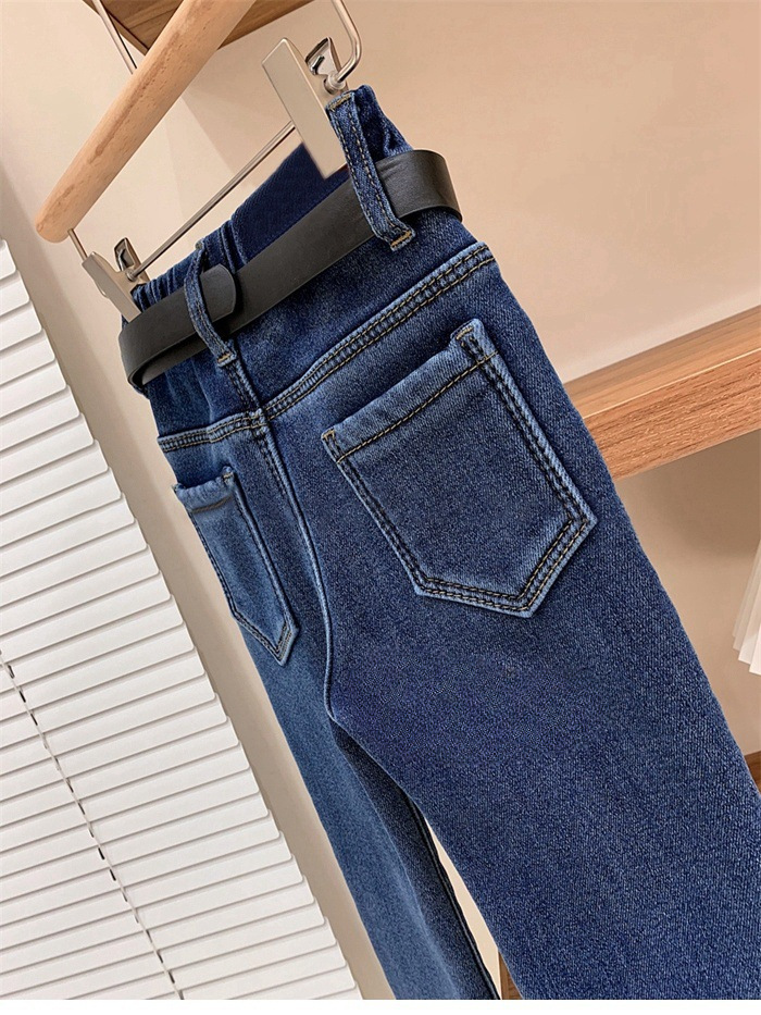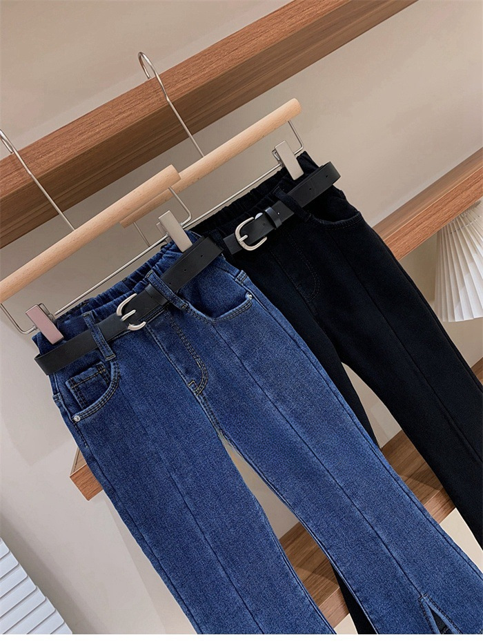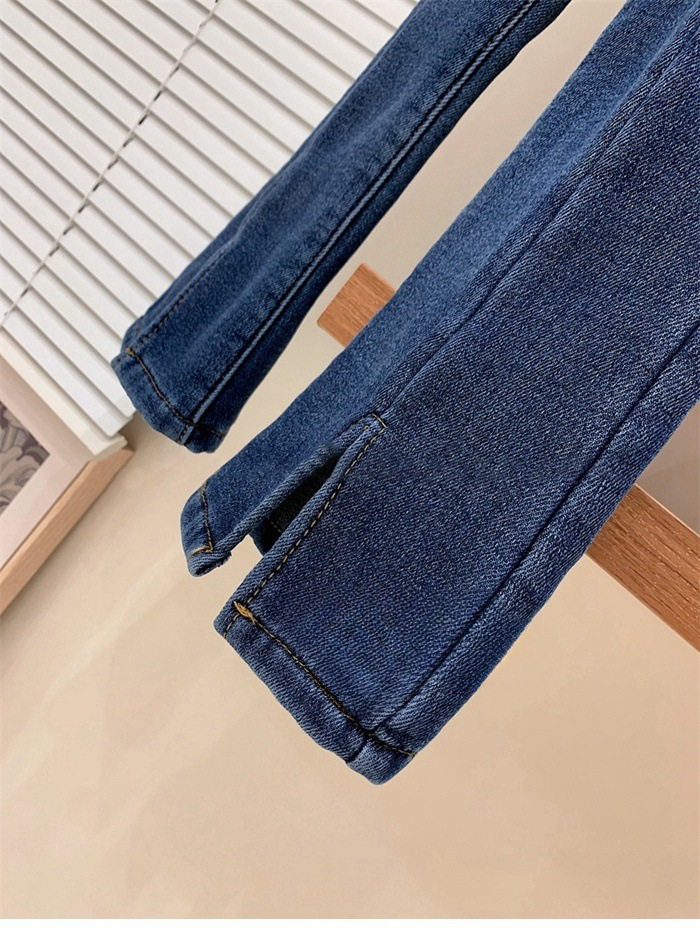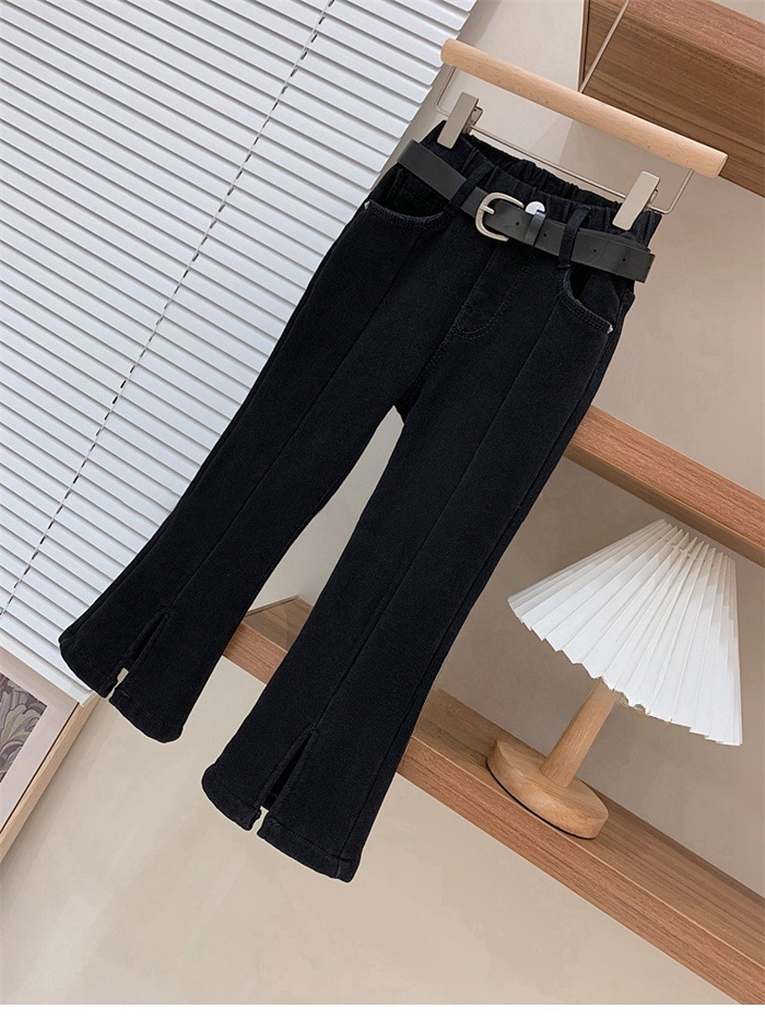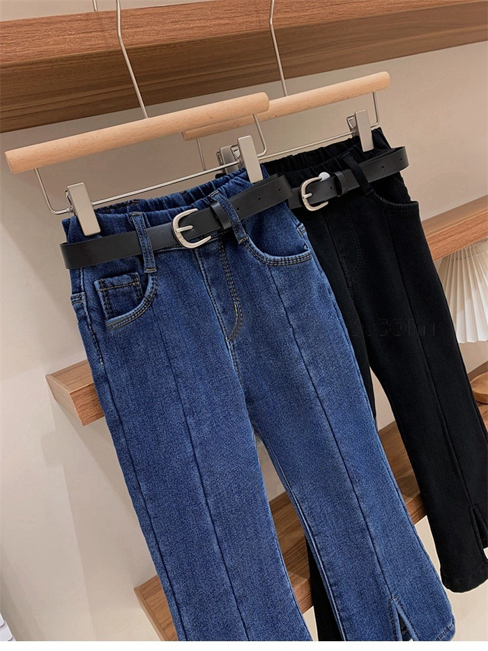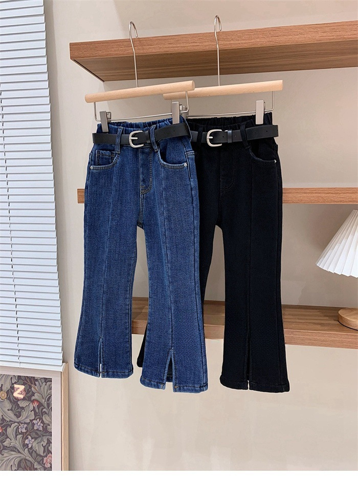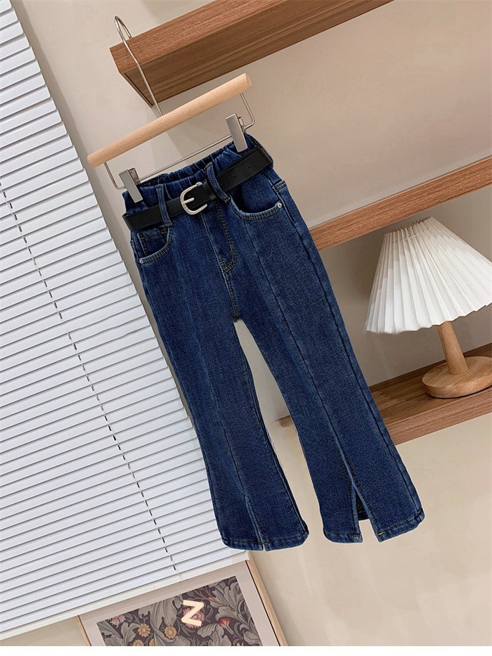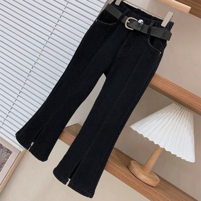 여아 청바지 2023 봄과 가을 서양 스타일 바지 새로운 어린이 세탁 유행 분할 한국 스타일 플레어 팬츠