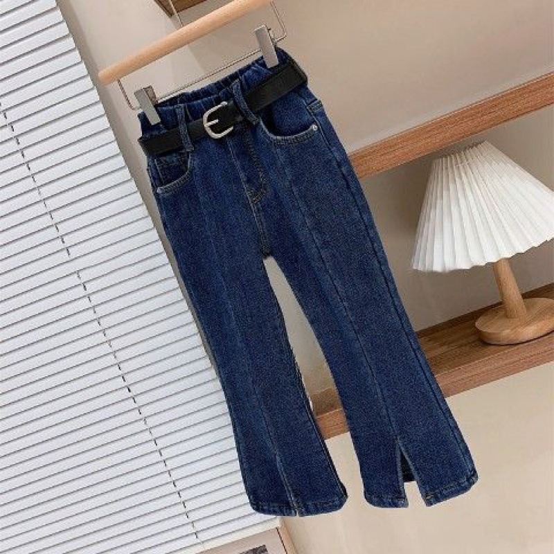 여아 청바지 2023 봄과 가을 서양 스타일 바지 새로운 어린이 세탁 유행 분할 한국 스타일 플레어 팬츠스토어 가기