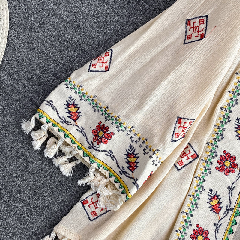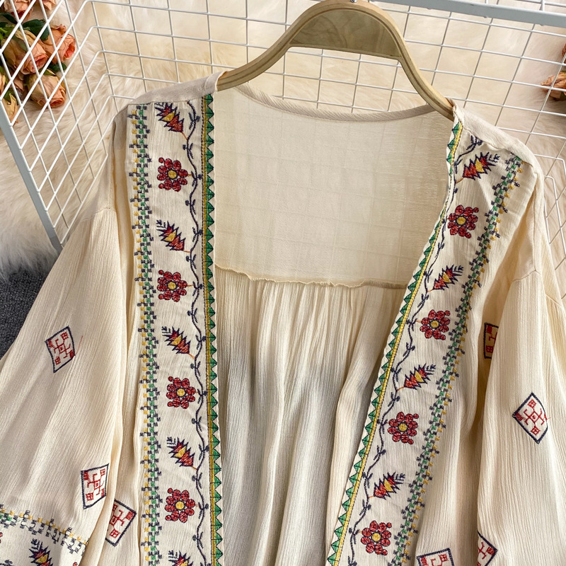 무료 배송 2023 봄 보헤미안 예술적 빈티지 쉬폰 여성용 카디건 칼라리스 느슨한 레이스 셔츠