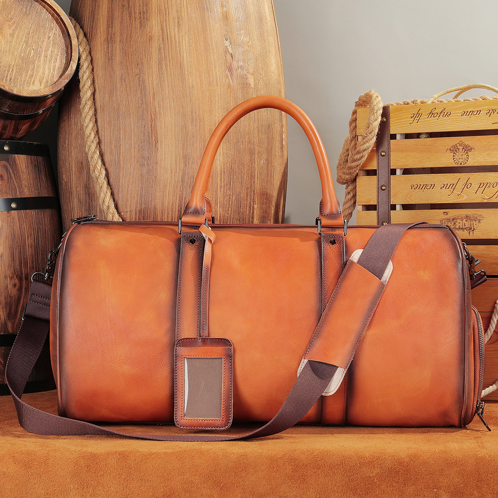 2023 신상품 다크 브라운 남자의 대용량 1 층 소가죽 여행 가방 짧은 여행 가죽 가방스토어 가기