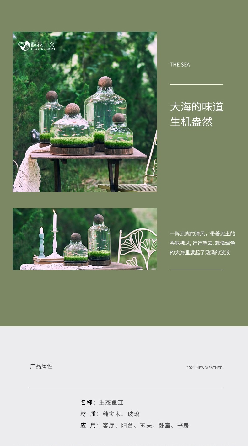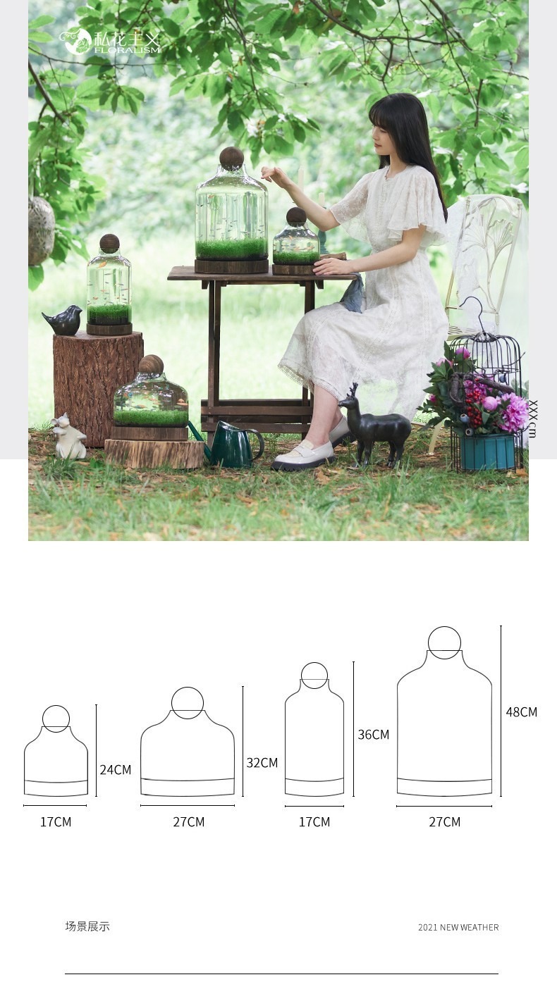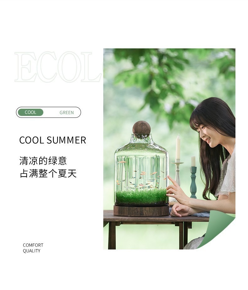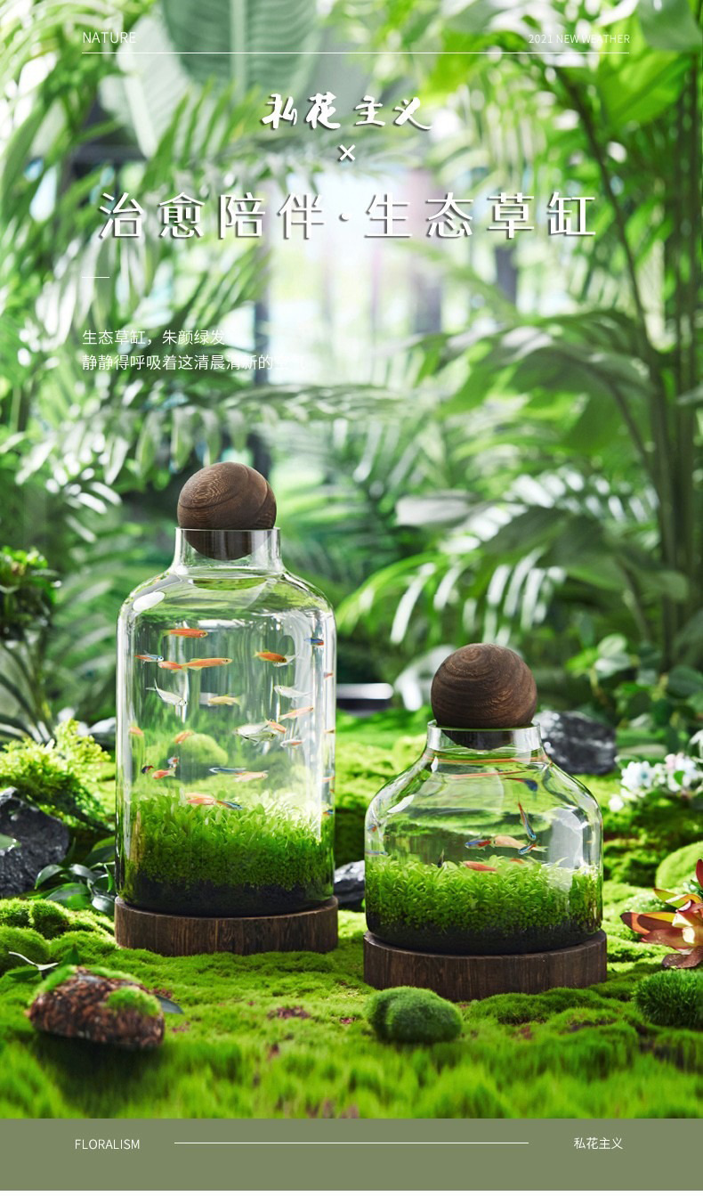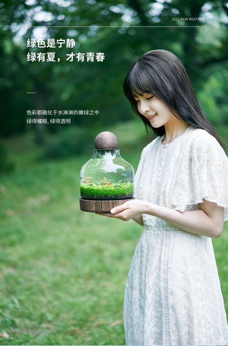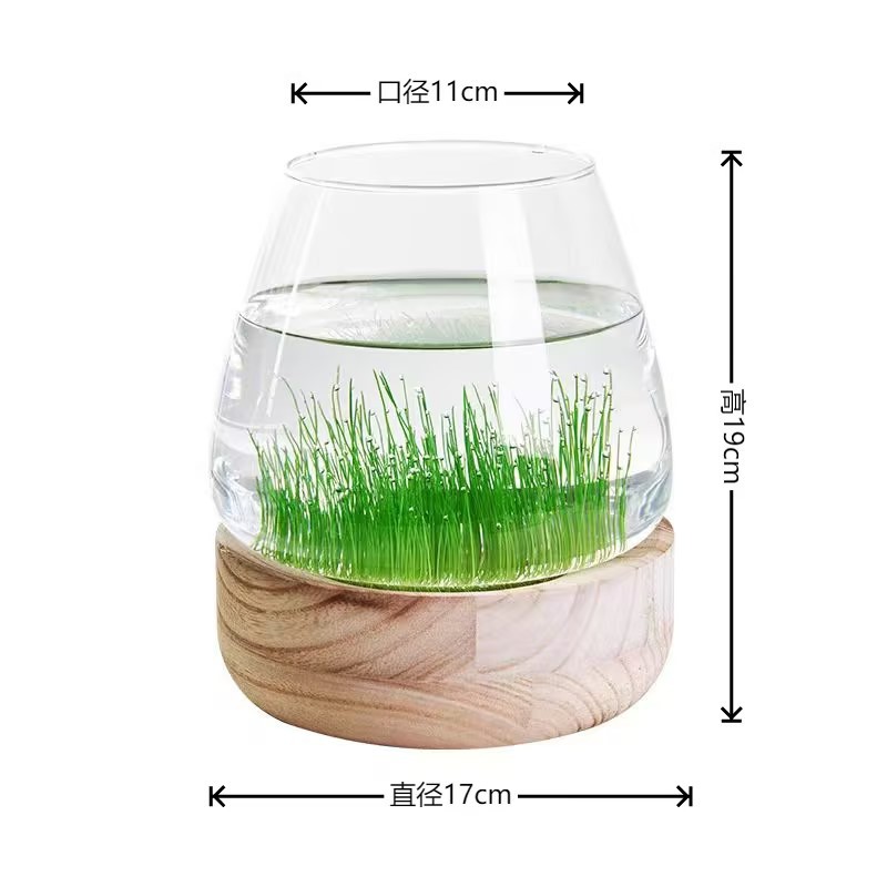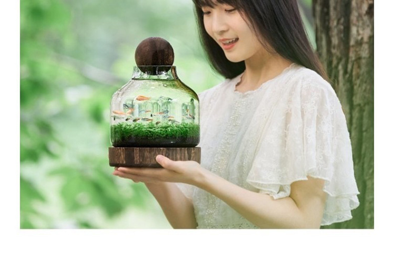 일본식 나무 바닥 투명 두꺼운 유리 어항 나무 쇼핑객 작은 물고기 풍경 생태 병 수경법 유리 꽃병