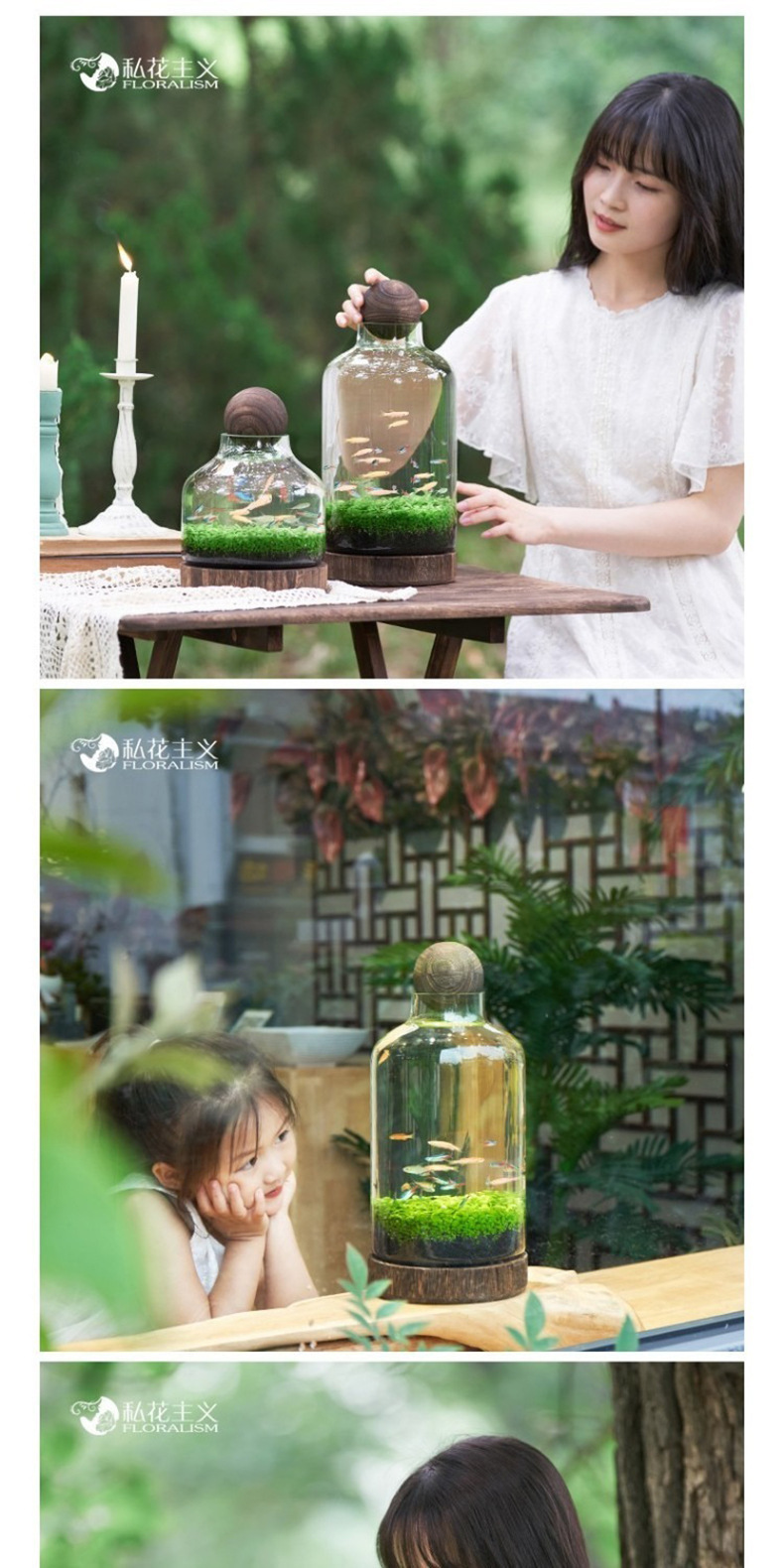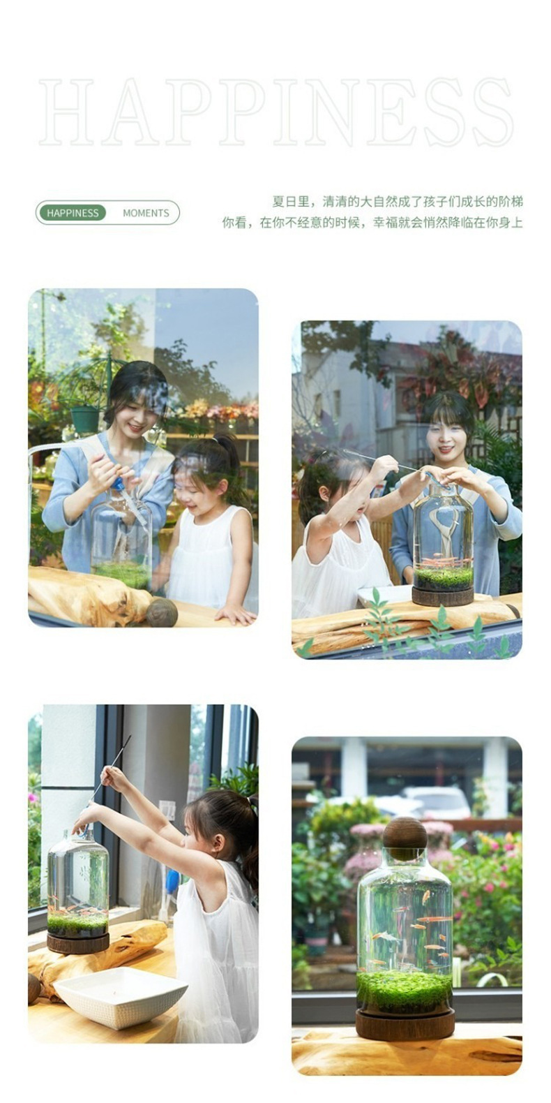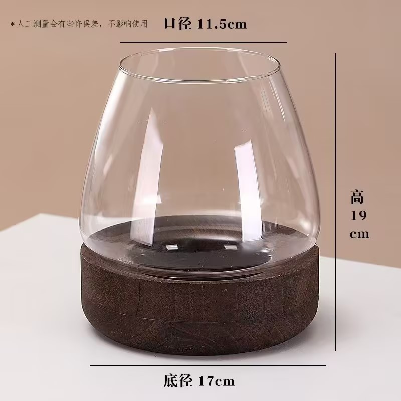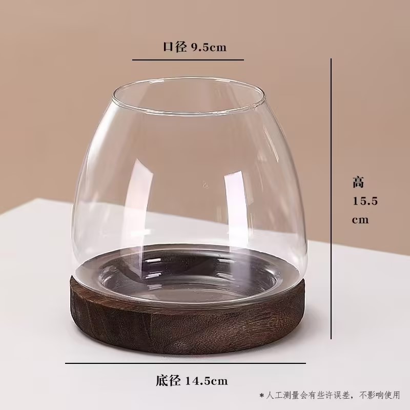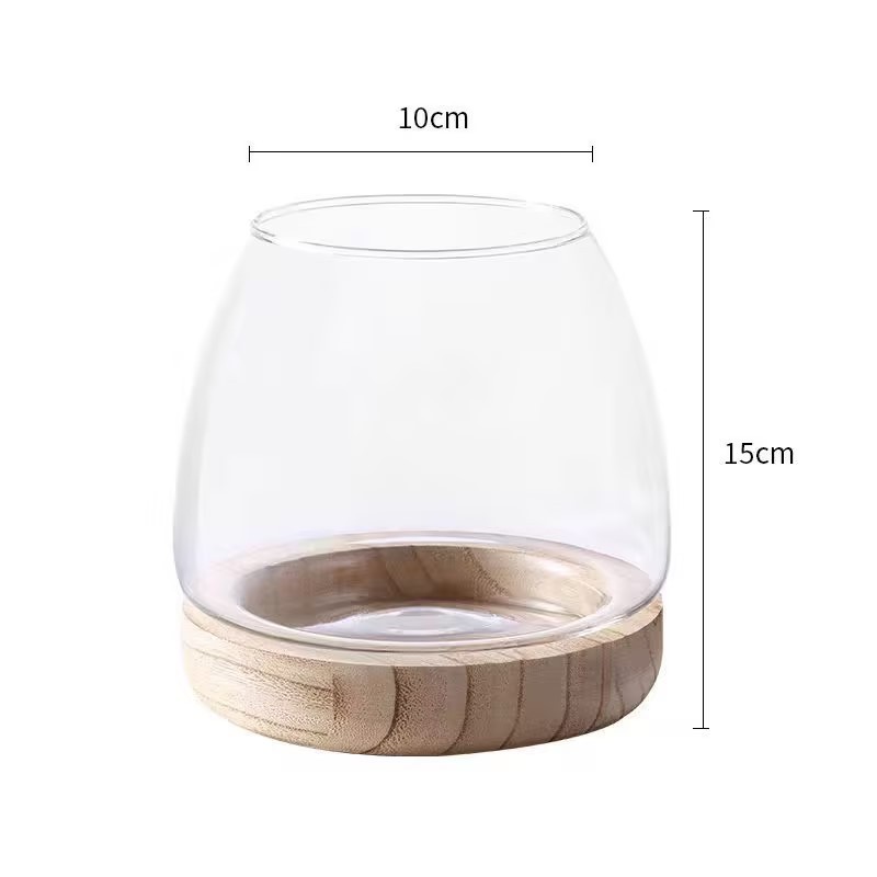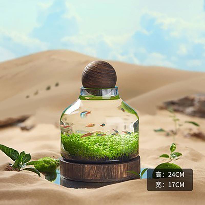 일본식 나무 바닥 투명 두꺼운 유리 어항 나무 쇼핑객 작은 물고기 풍경 생태 병 수경법 유리 꽃병스토어 가기