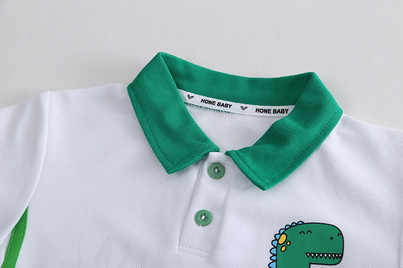 아동복 남아 여름 의류 라펠 공룡 반팔 세트 2023 새로운 여름 어린이 반팔 셔츠 스포츠 투피스 세트