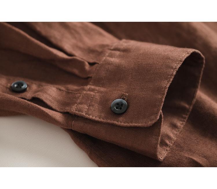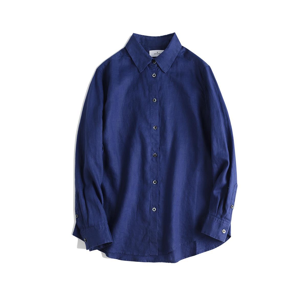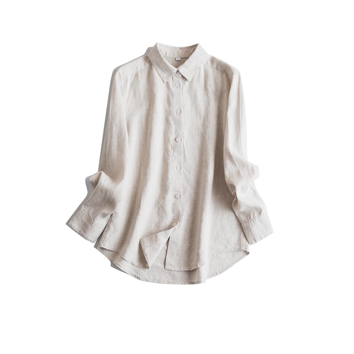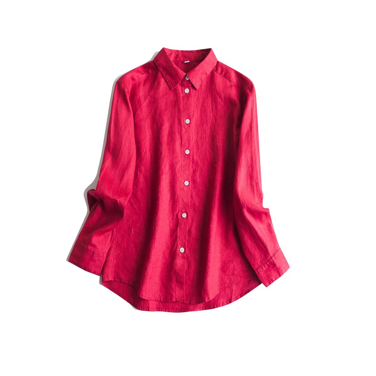 통근용 린넨 긴팔 셔츠, 심플하고 예술적인 단색 루즈 라펠, 편안하고 통기성이 좋은 셔츠 3704를 안정적으로 공급합니다.