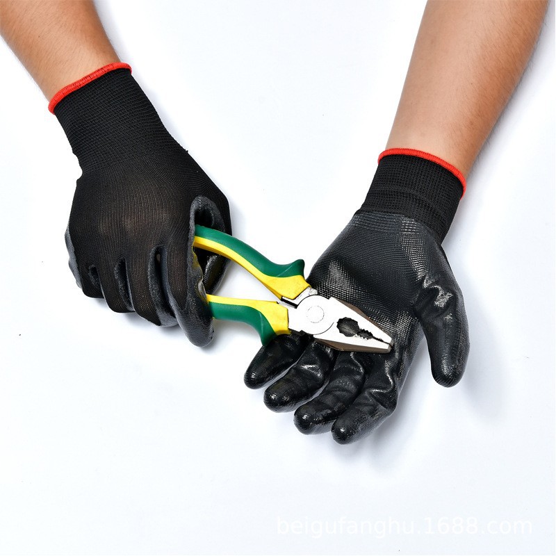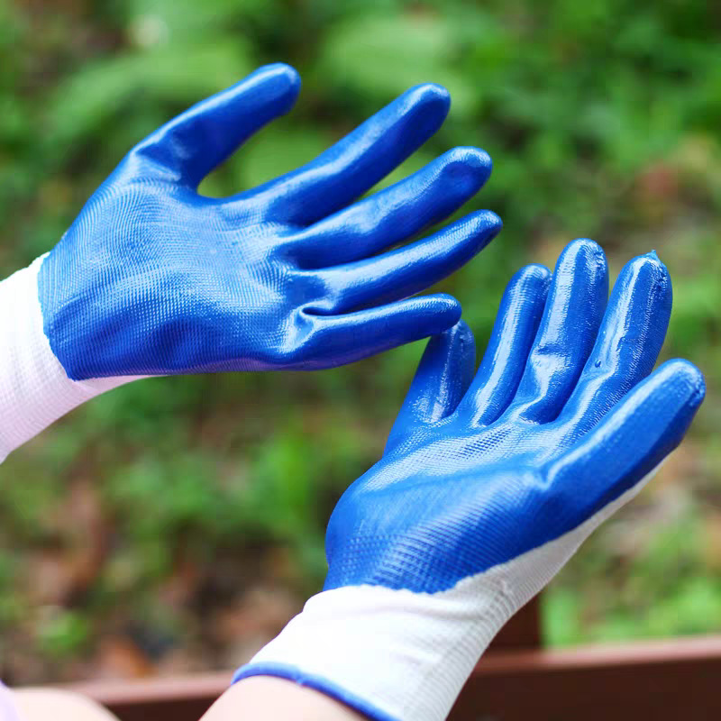 노동 보호 장갑 니트릴 부틸 고무 디핑 장갑 작업 두꺼운 미끄럼 방지 내마모성 나일론 고무 보호 장갑 도매스토어 가기