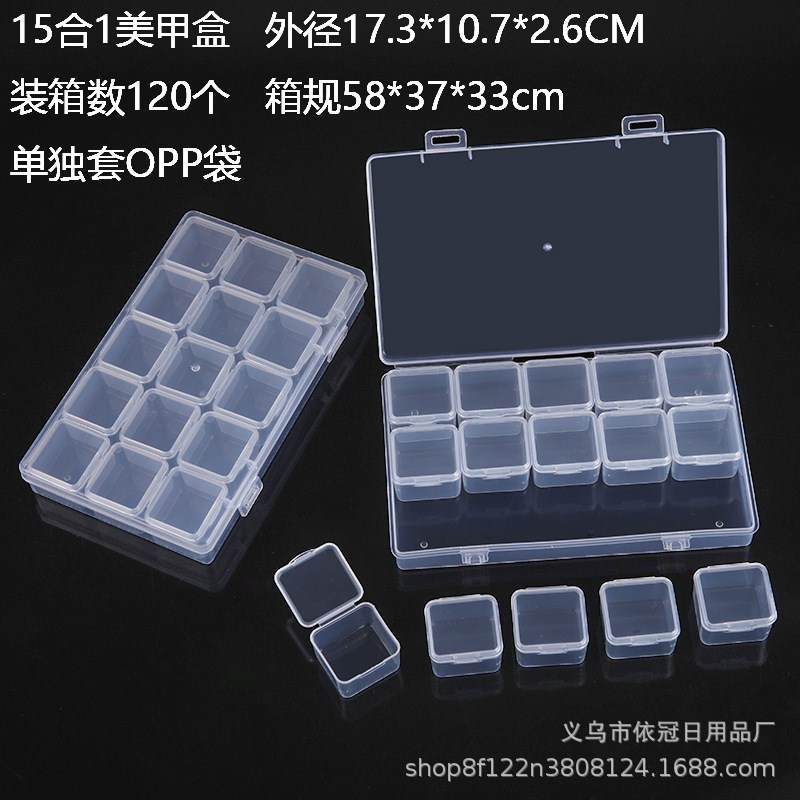 包装:可拆15格、大15格、15合1美甲盒单独opp袋包装,其他款式没有包装