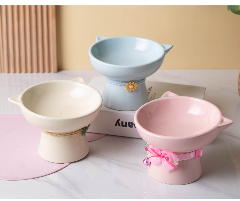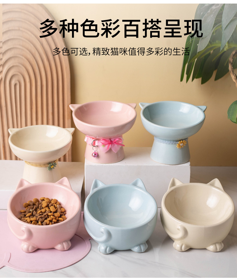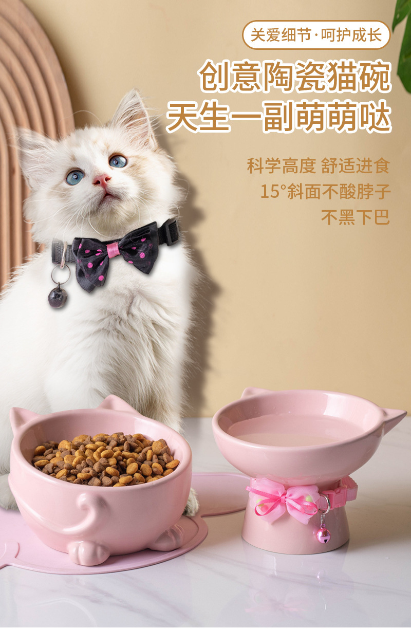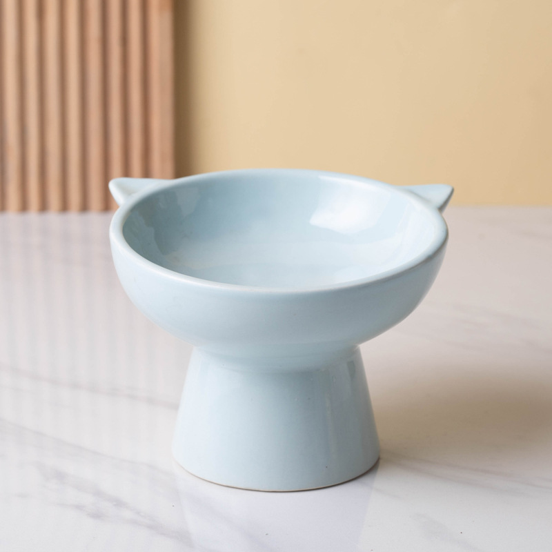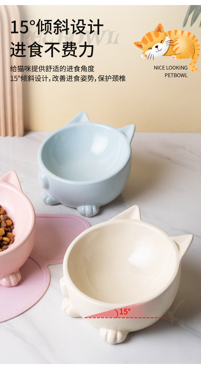 고양이 그릇 세라믹 높은 발 비스듬한 입 음식 분지 보호 경추 방지 음식 그릇 더블 그릇 고양이 개 애완 동물 그릇 신제품스토어 가기