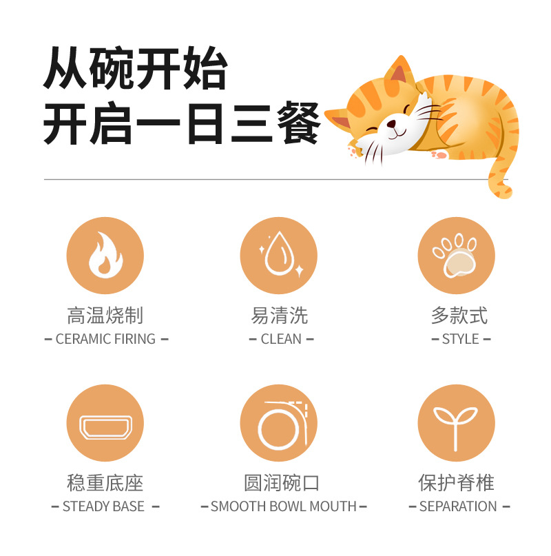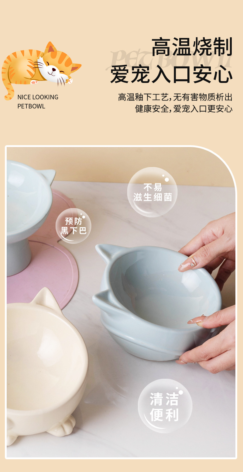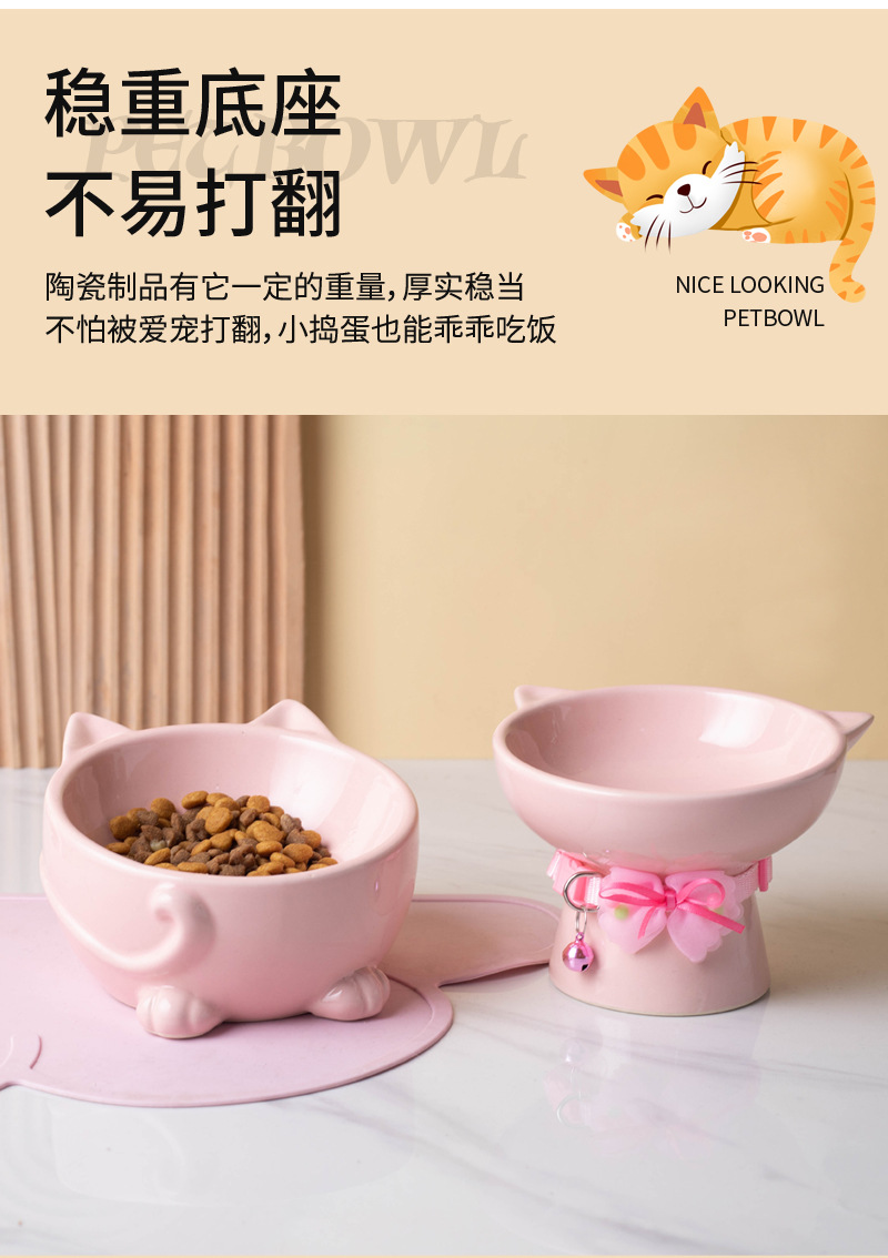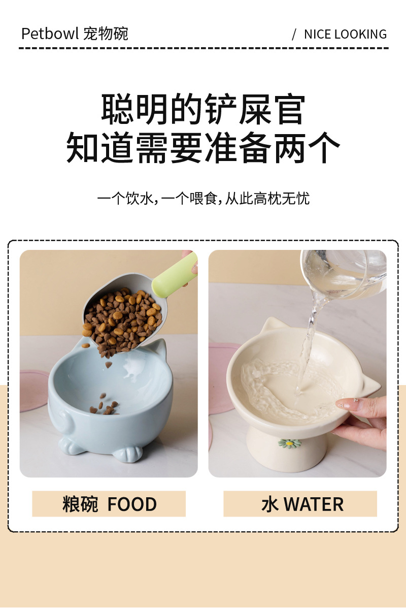 고양이 그릇 세라믹 높은 발 비스듬한 입 음식 분지 보호 경추 방지 음식 그릇 더블 그릇 고양이 개 애완 동물 그릇 신제품스토어 가기