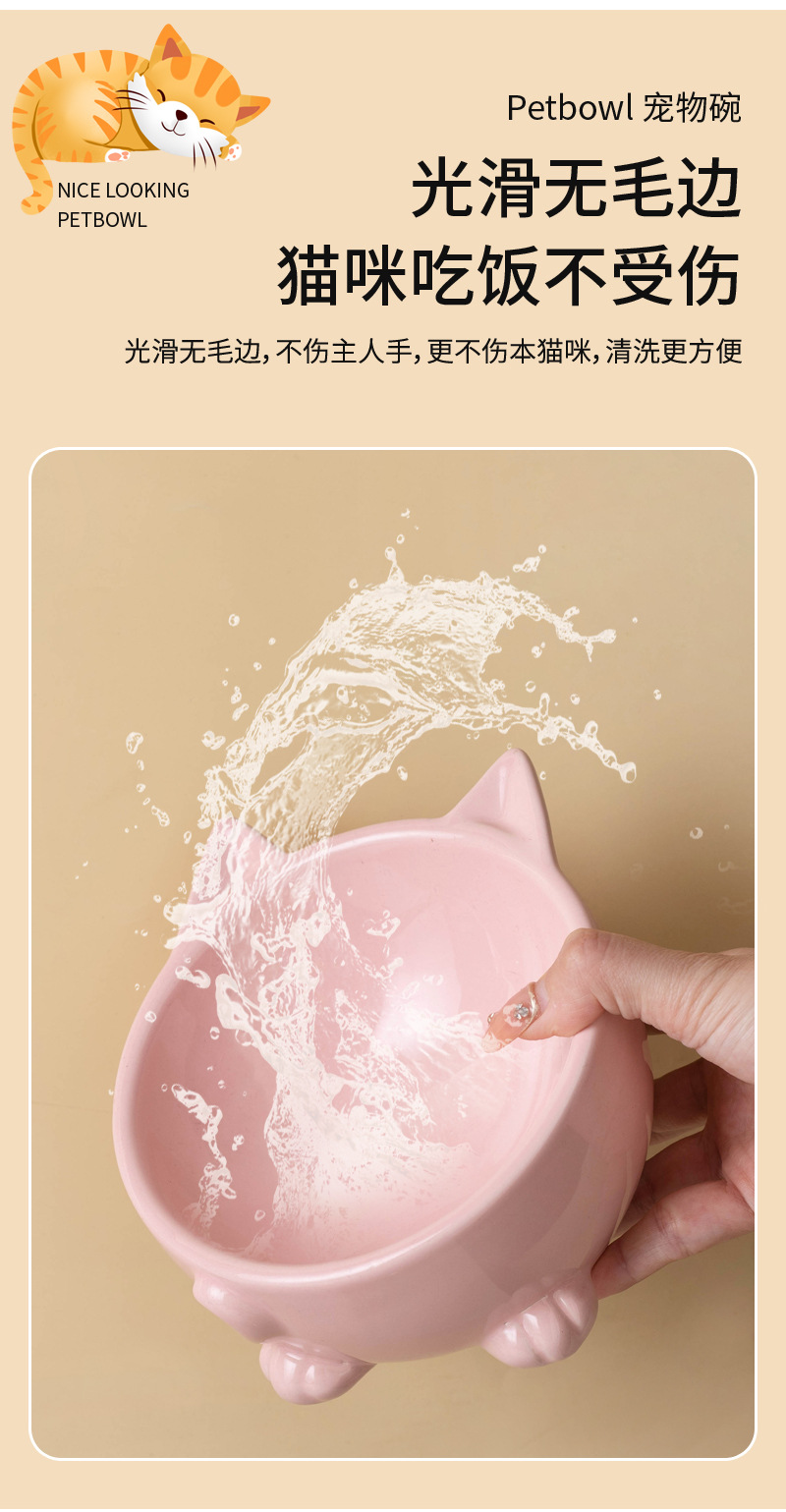 고양이 그릇 세라믹 높은 발 비스듬한 입 음식 분지 보호 경추 방지 음식 그릇 더블 그릇 고양이 개 애완 동물 그릇 신제품