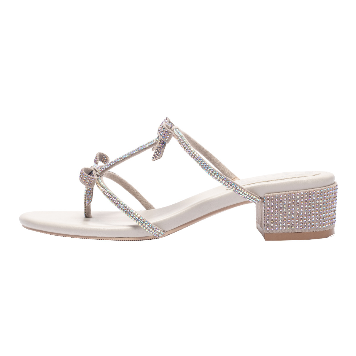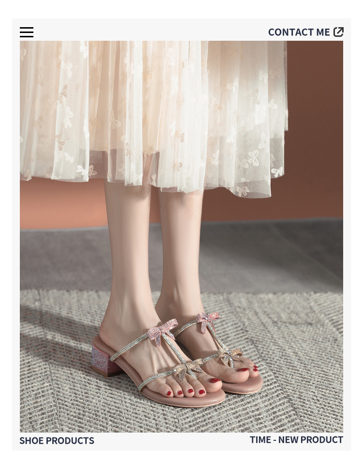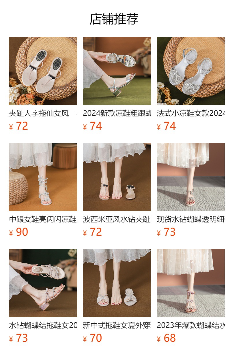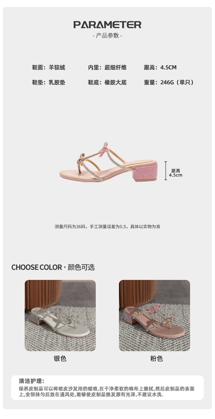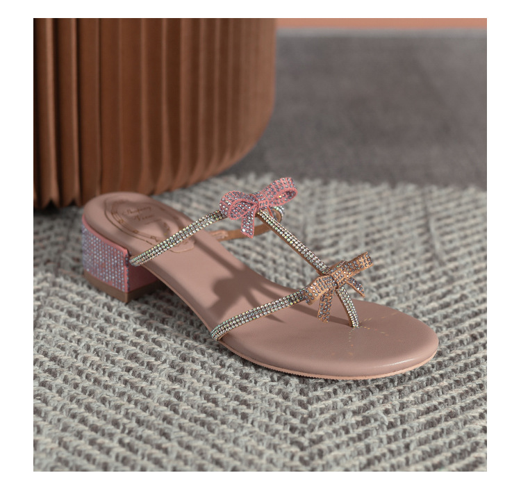 여름 신상품 물방울 모양 샌들 리본 샌들 반짝이는 요정 스타일 슬리퍼 두꺼운 굽 중간 굽 여성용 신발스토어 가기