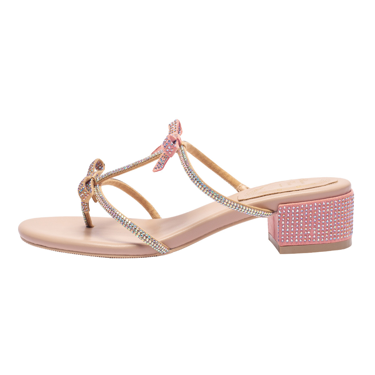 여름 신상품 물방울 모양 샌들 리본 샌들 반짝이는 요정 스타일 슬리퍼 두꺼운 굽 중간 굽 여성용 신발