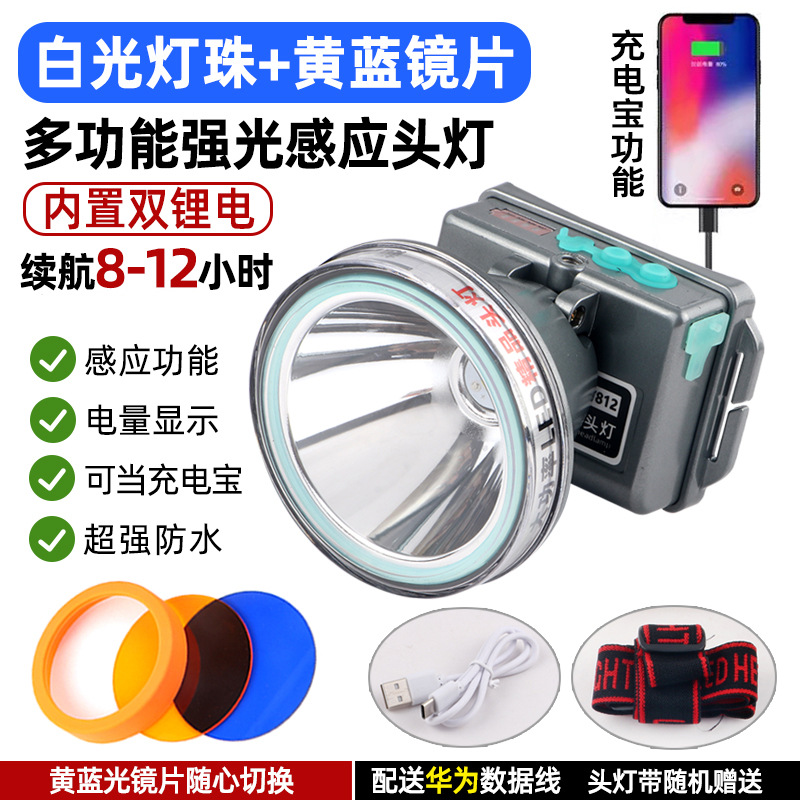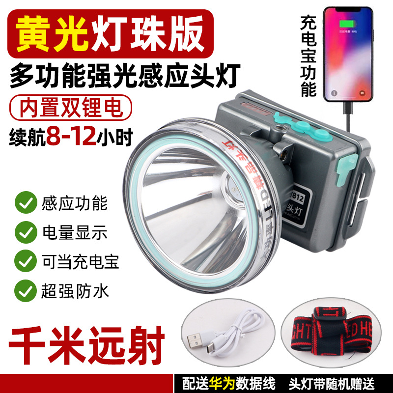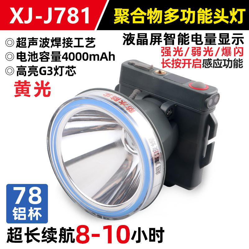 • XJ-J821 옐로우 라이트 폴리머 리튬 배터리 방수 유도 헤드 라이트 배터리 수명 8-10 시간
