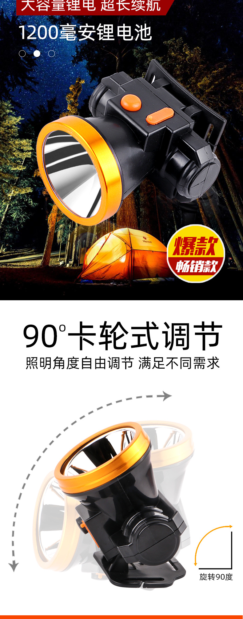 • XJ-J951 옐로우 라이트 폴리머 리튬 배터리 방수 유도 전조등 배터리 수명 8-10 시간