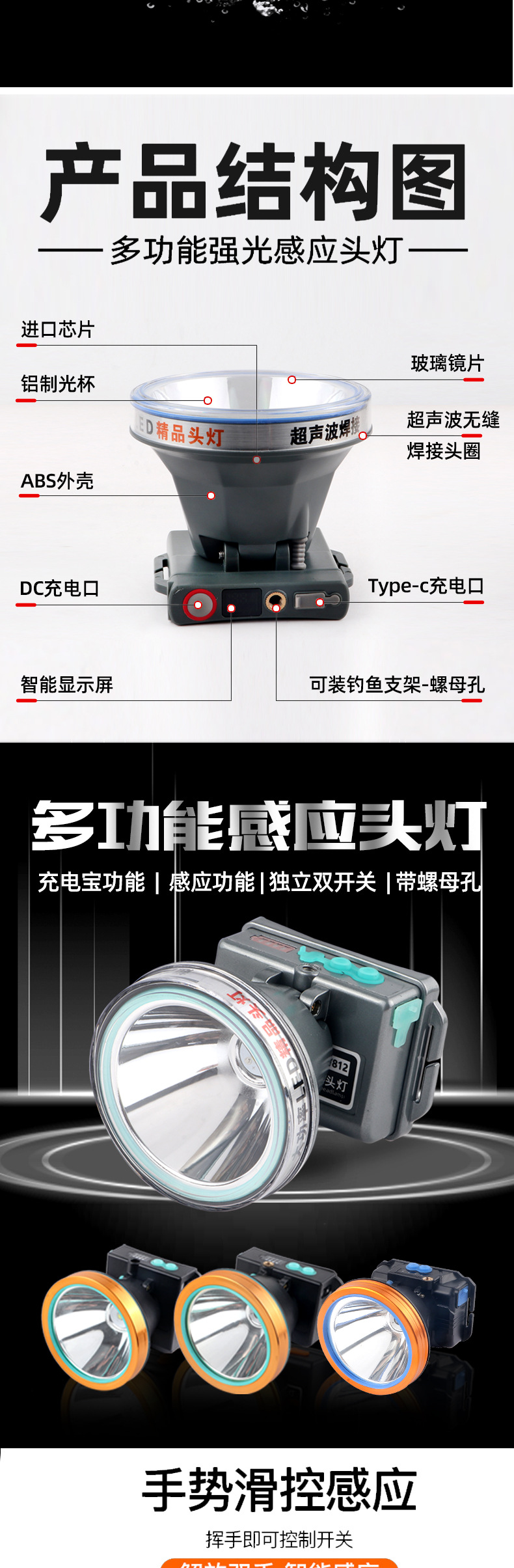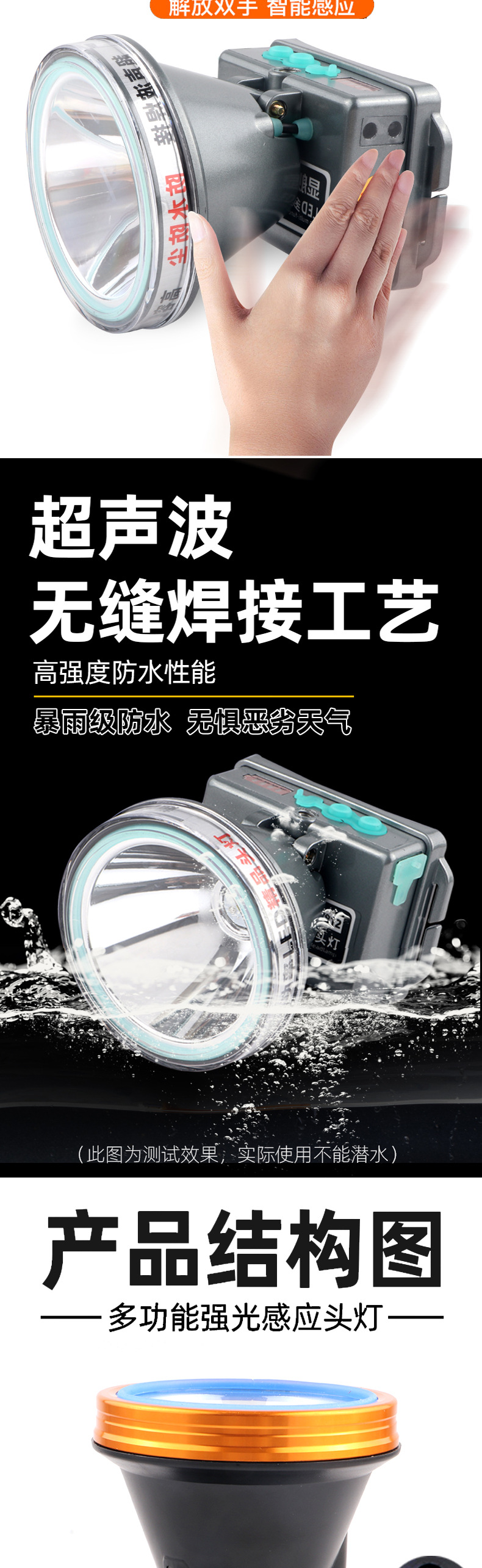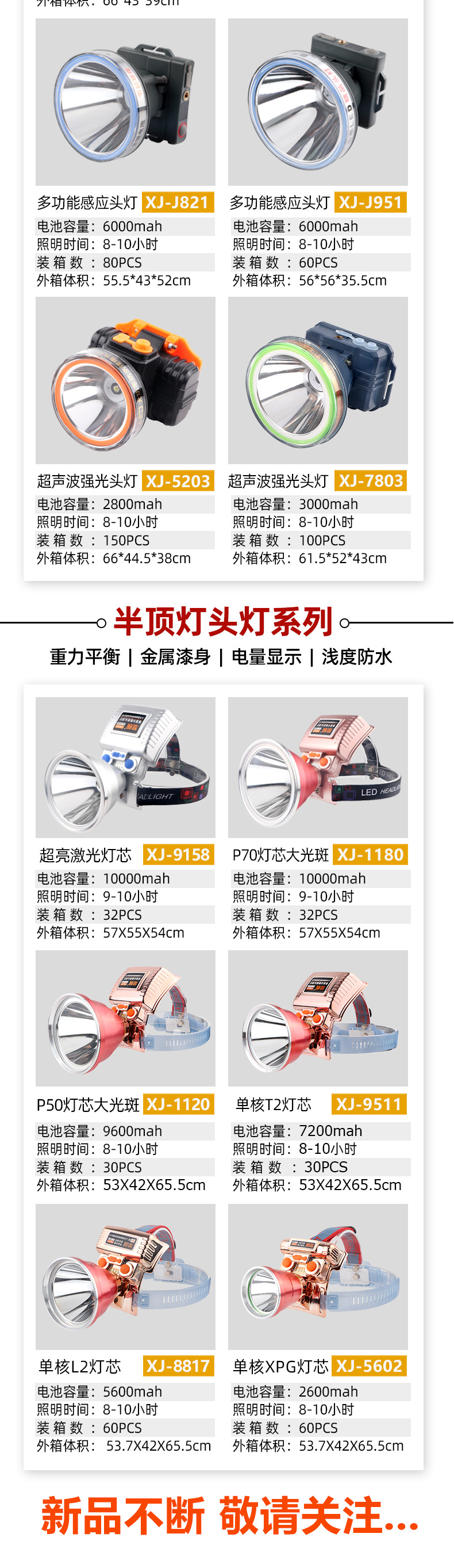 • XJ-J821 폴리머 리튬 배터리 방수 유도 헤드 라이트 배터리 수명 8-10 시간