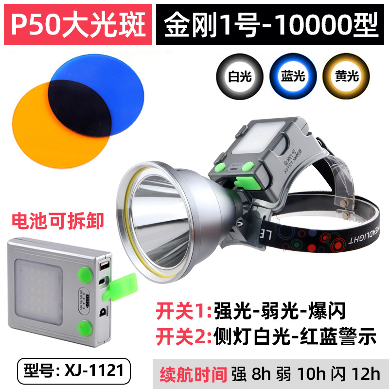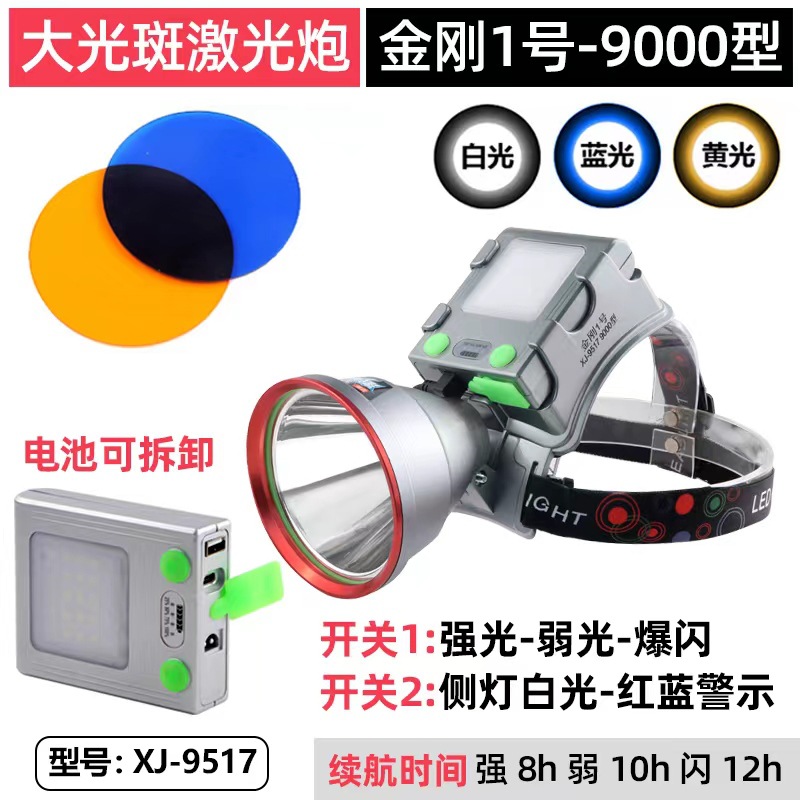 • XJ-9517 3 개의 광원 대형 스팟 레이저 램프 구슬 탈착식 측면 조명 10000 mA 배터리 수명 8-12 시간