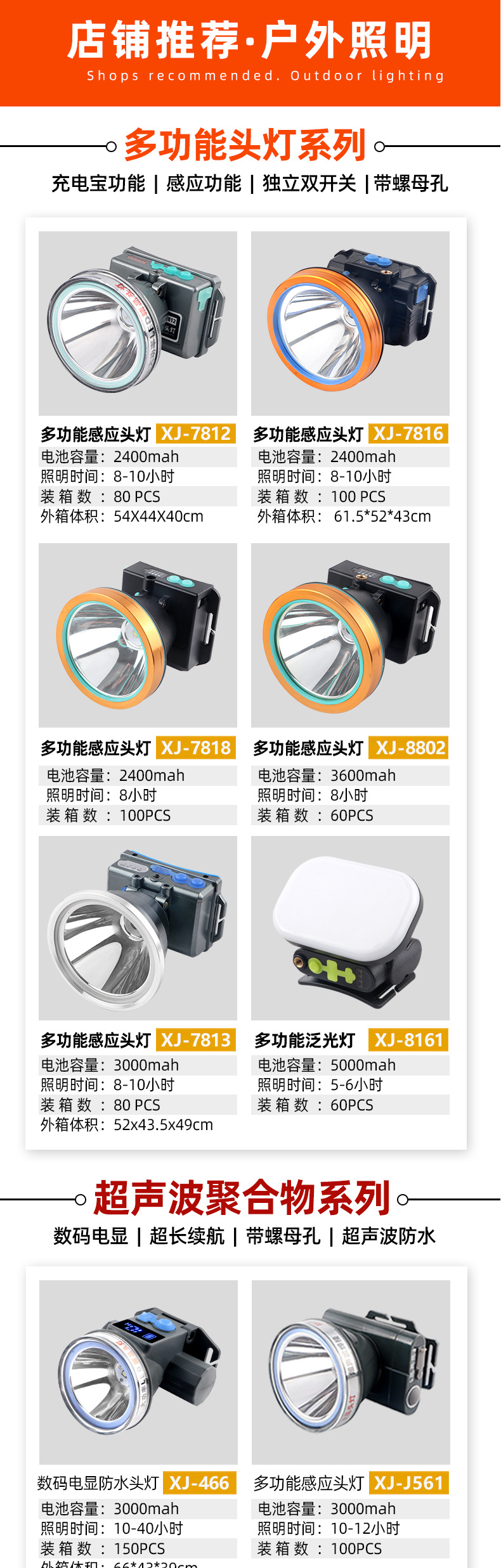 • XJ-7812 3 광원, 인덕션 충전 보물 기능 더블 리튬 배터리 수명 8-12 시간