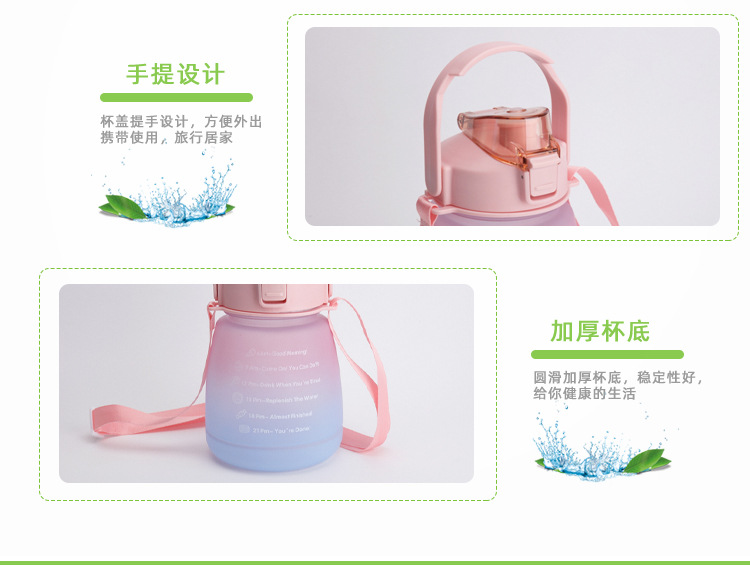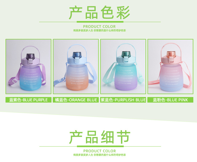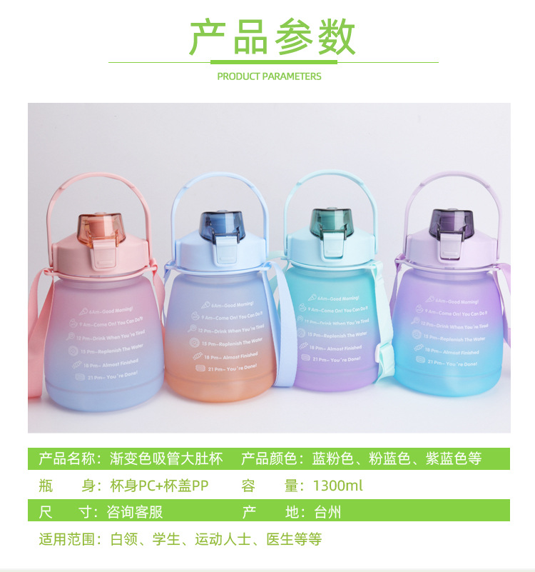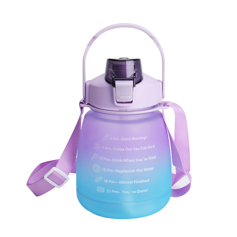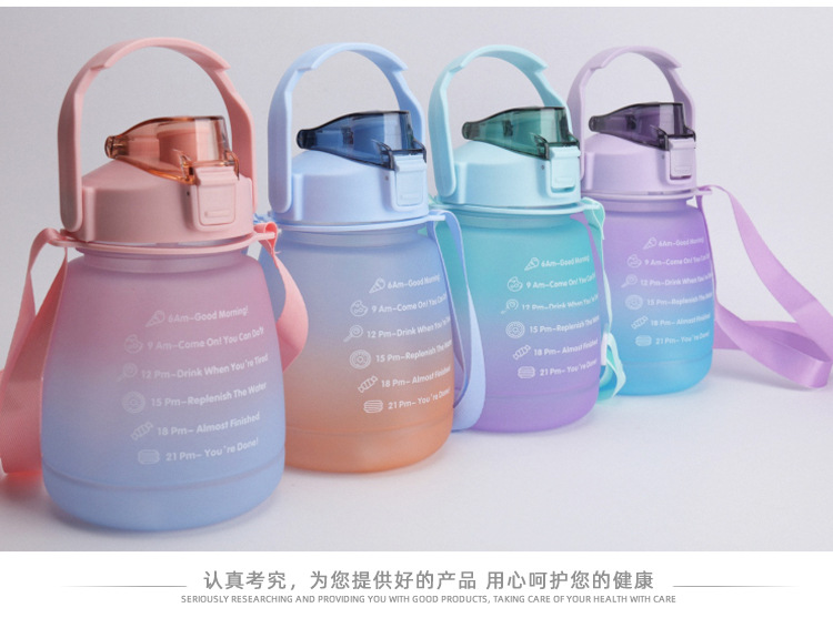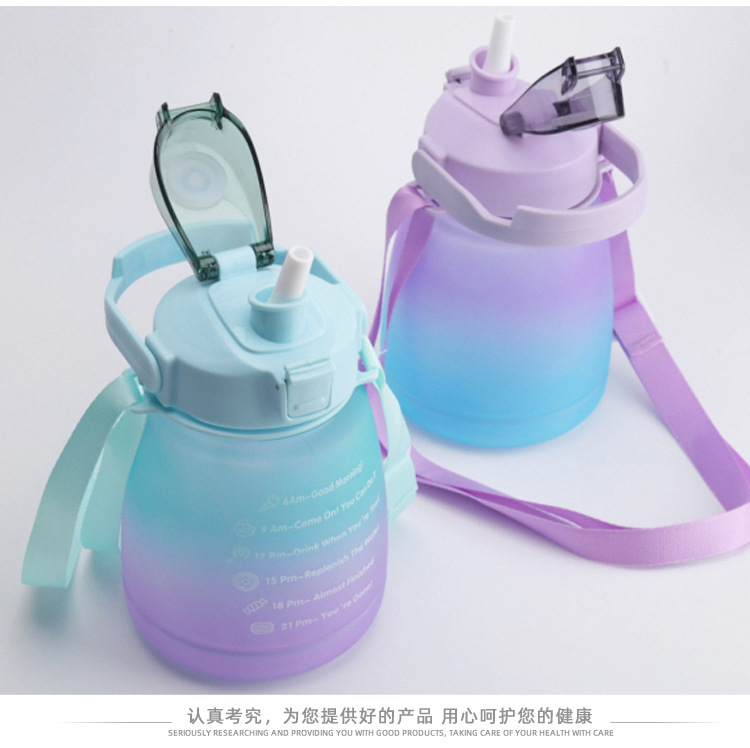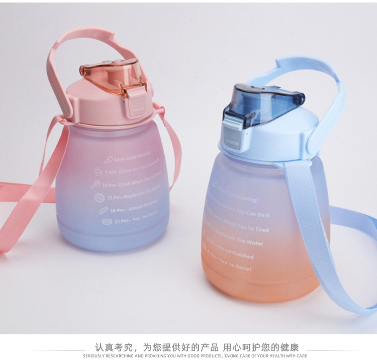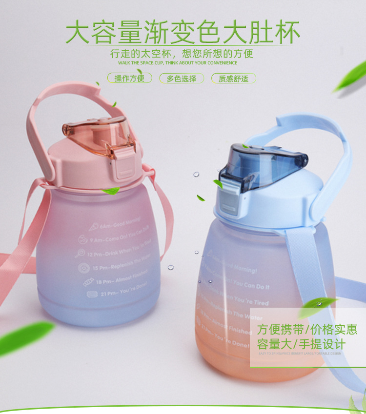 크로스 보더 숄더 스트랩 그라데이션 큰 배 컵 플라스틱 컵 컬러 스프레이 작은 지방 컵 스포츠 플라스틱 짚 컵 큰 배 컵스토어 가기
