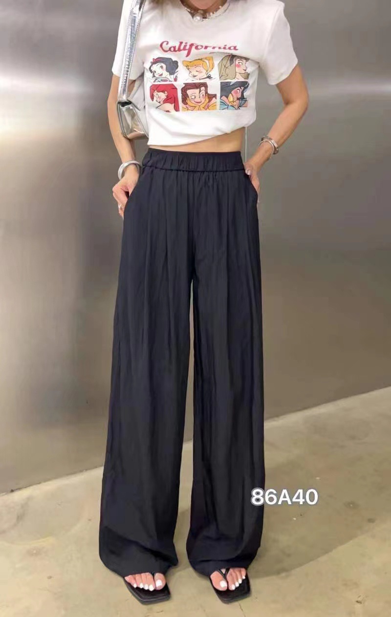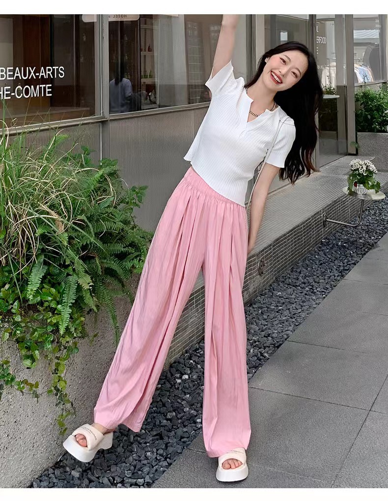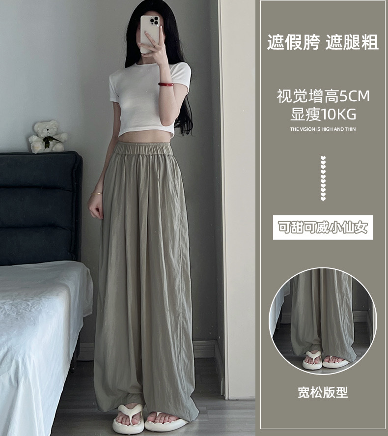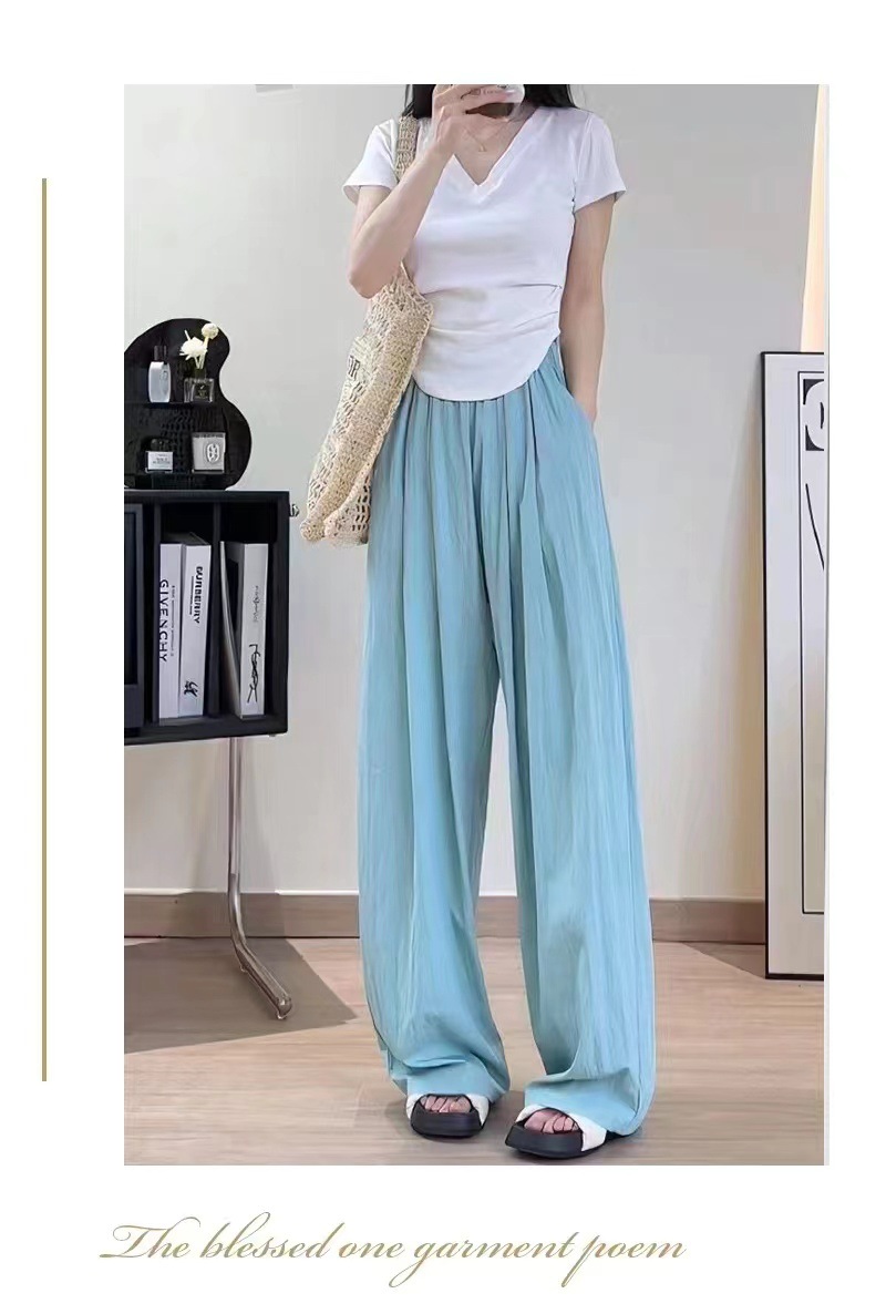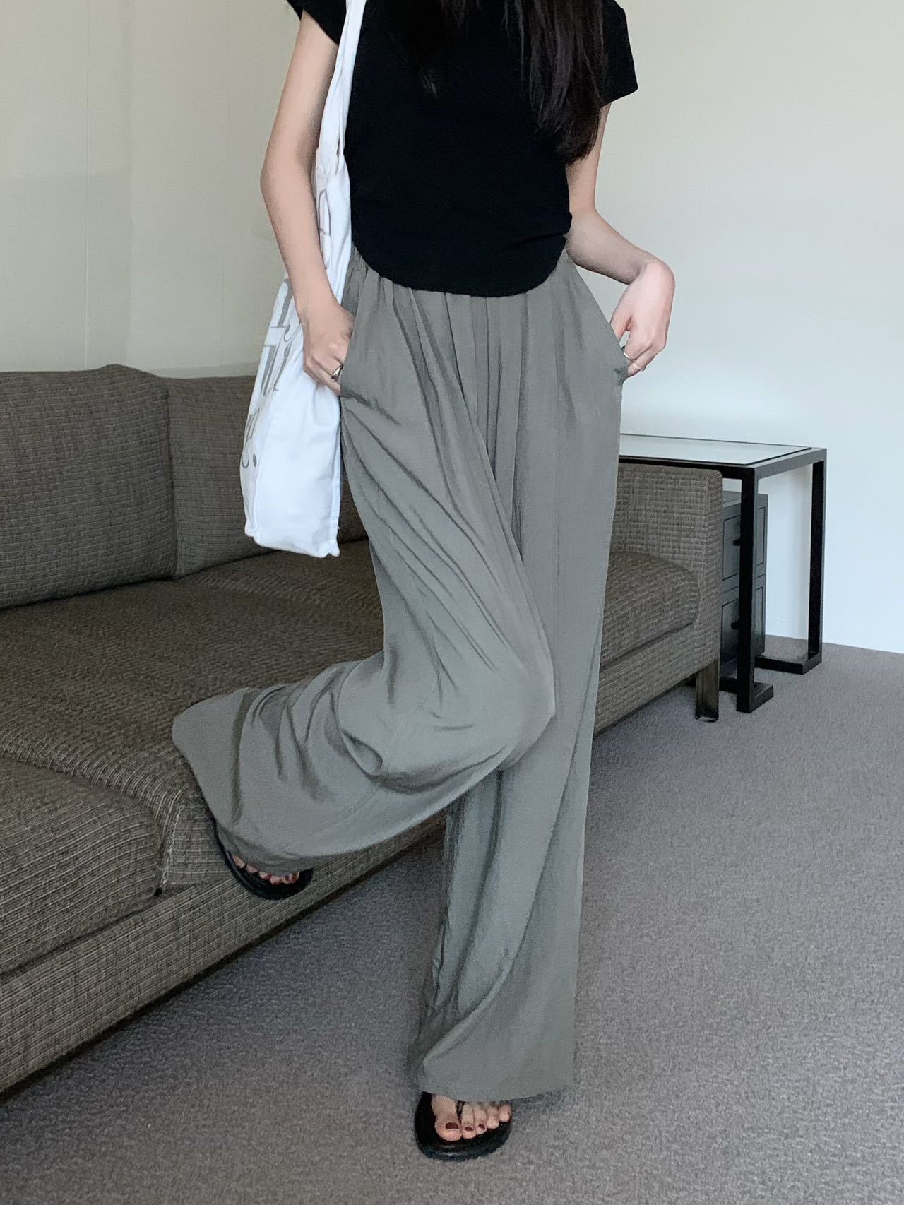 2025 여름 새로운 얼음 실크 야마모토 바지 여성 하이 웨이스트 드레이프 캐주얼 다목적 게으른 스타일 스트레이트 바지 드롭 배송