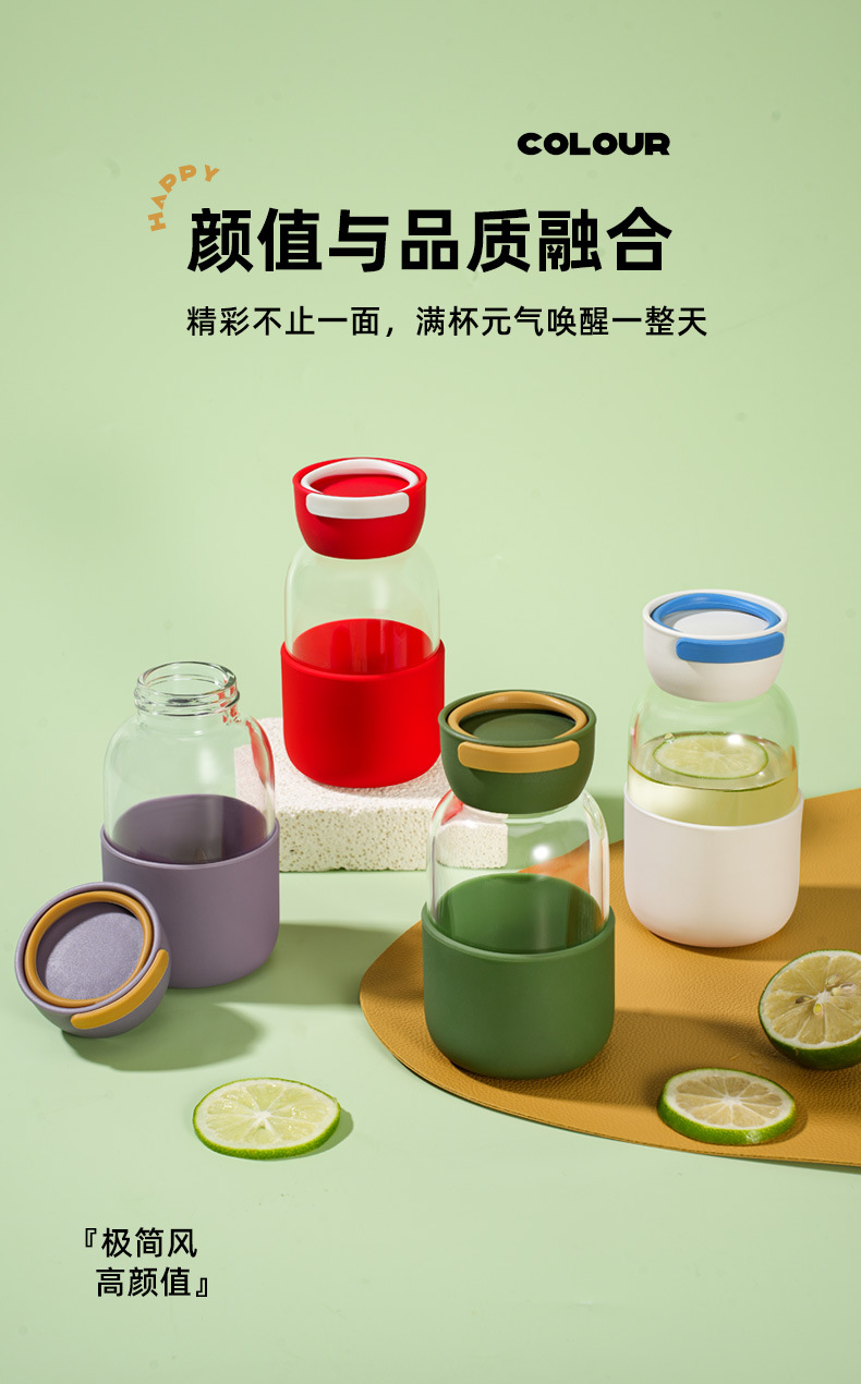 두꺼운 휴대용 고온 방폭 물컵을 담는 귀여운 모란디 마카롱 물컵 유리 물컵스토어 가기