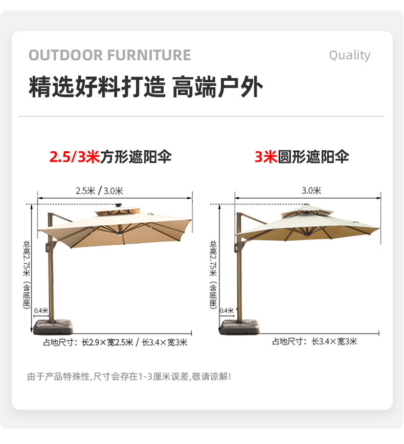 • 2.5 m 평방 로마 우산 [업그레이드 + 60kg 대리석]]