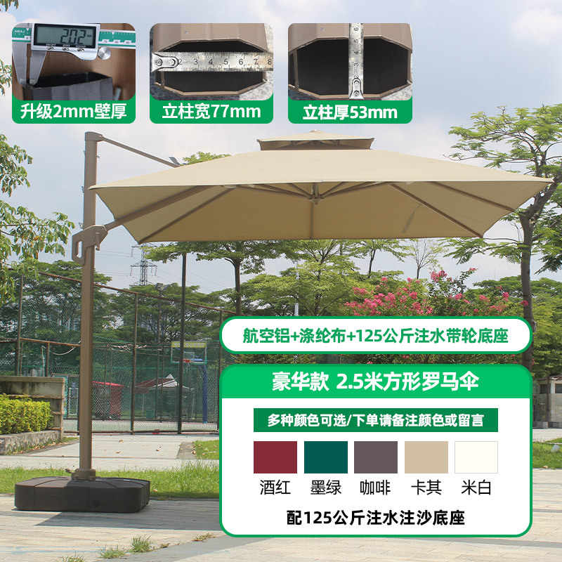 • 2.5 m 사각 로마 우산 [럭셔리 + 125kg 물 주사 모래 주사 베이스]]