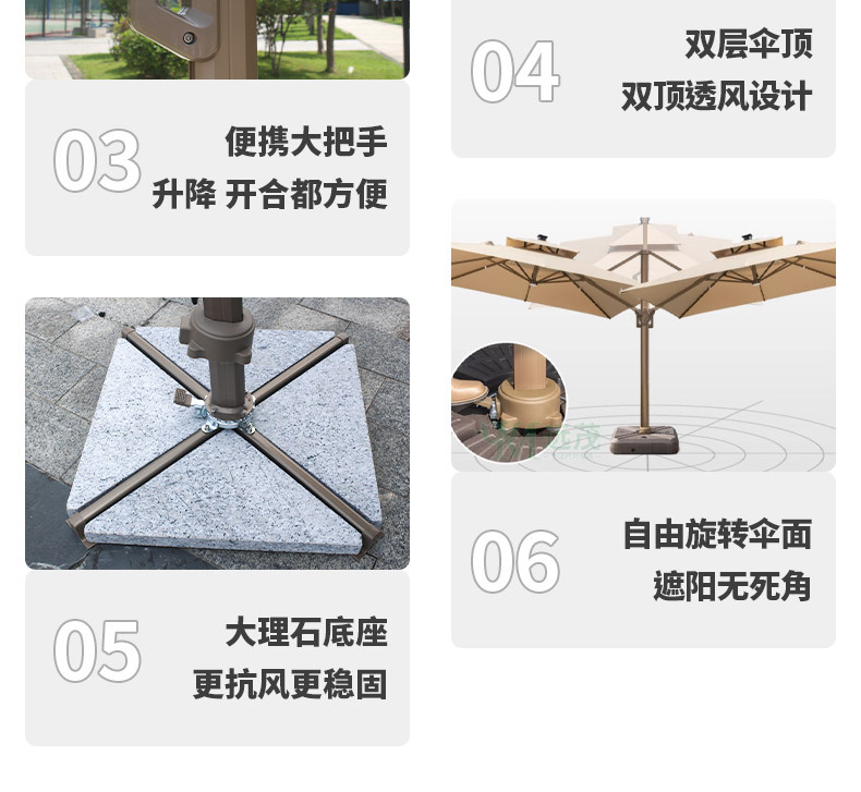 • 3 m 평방 로마 우산 [업그레이드 + 60kg 대리석]]