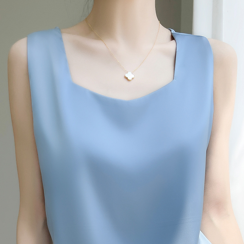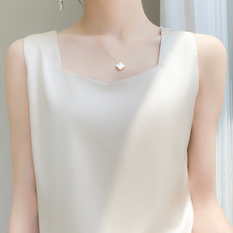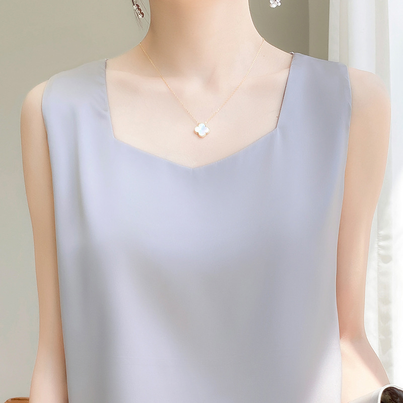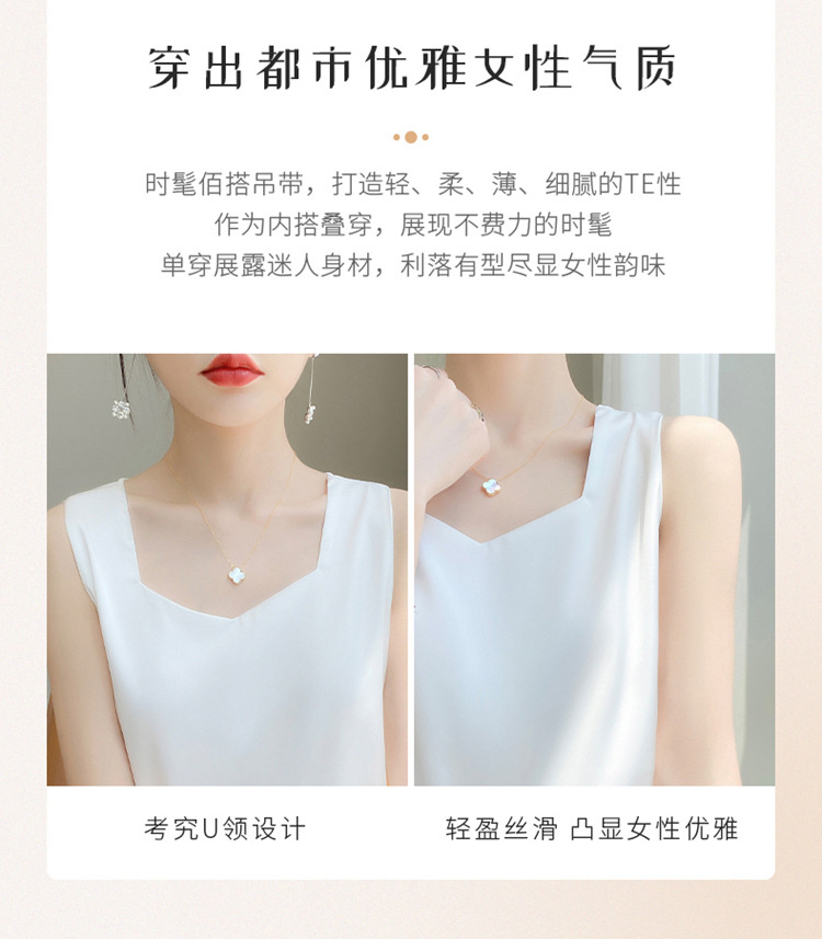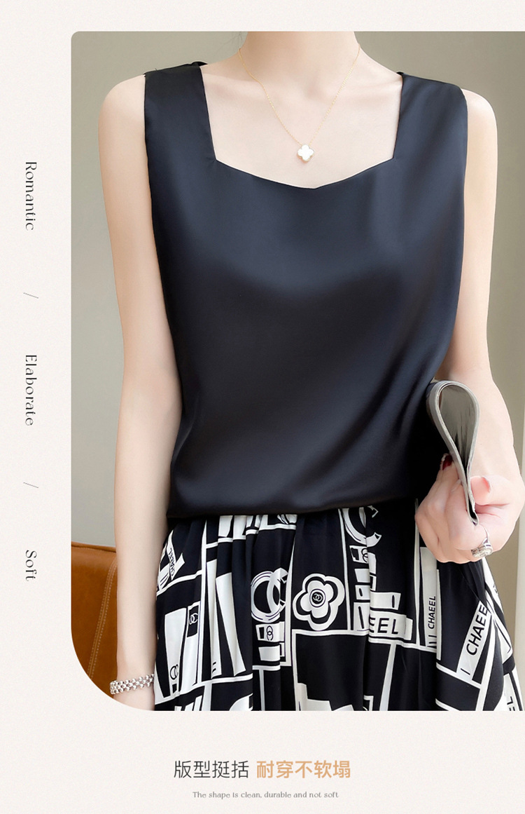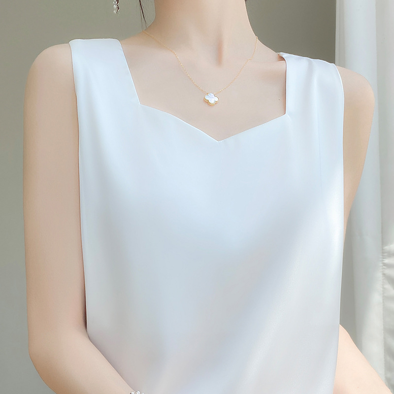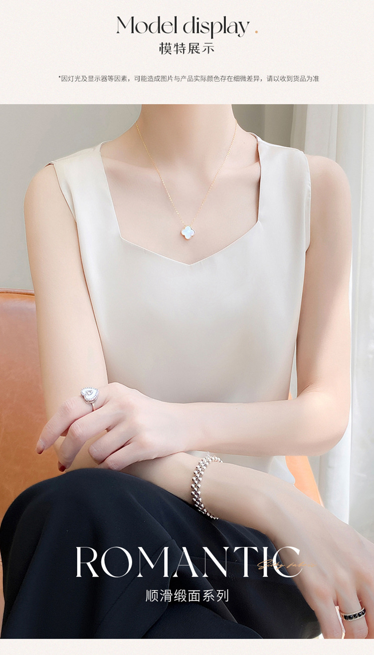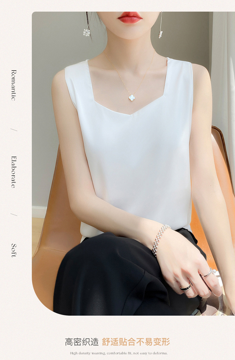 2023 여름 여성용 새로운 하트 모양 V넥 슬링 아세트산 새틴 탑 올매치 슬림핏 와이드 숄더 민소매 조끼