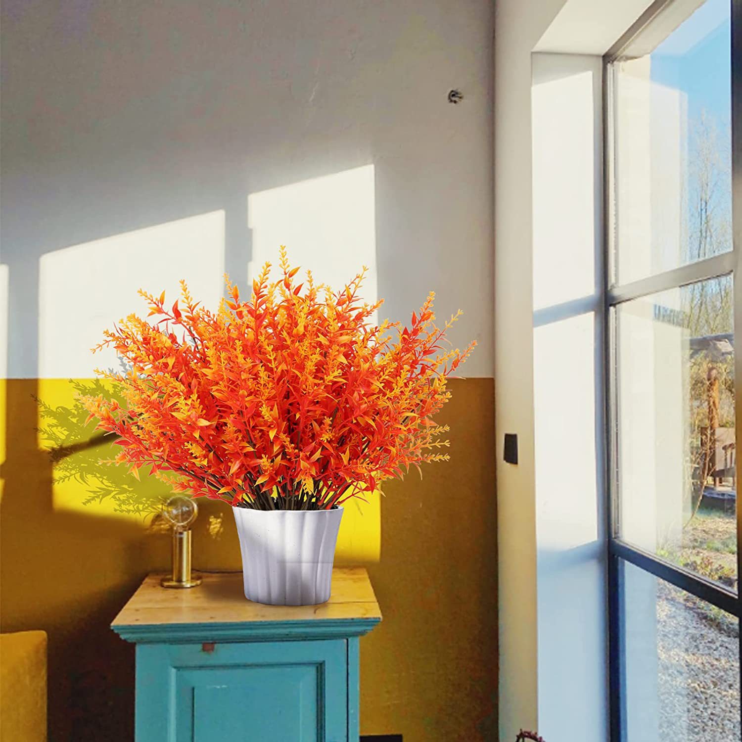 크로스 보더 핫 세일 야외 인공 가을 색 식물 플라스틱 인공 꽃 가짜 야외 식물 가정 정원 장식