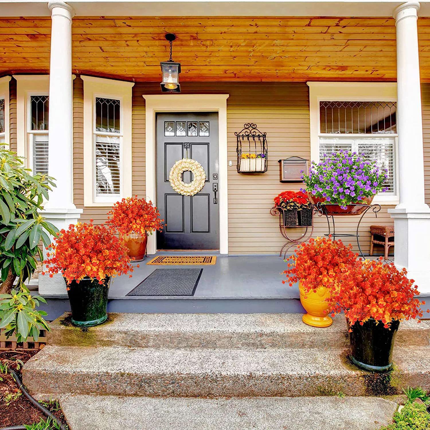 크로스 보더 핫 세일 야외 인공 가을 색 식물 플라스틱 인공 꽃 가짜 야외 식물 가정 정원 장식스토어 가기
