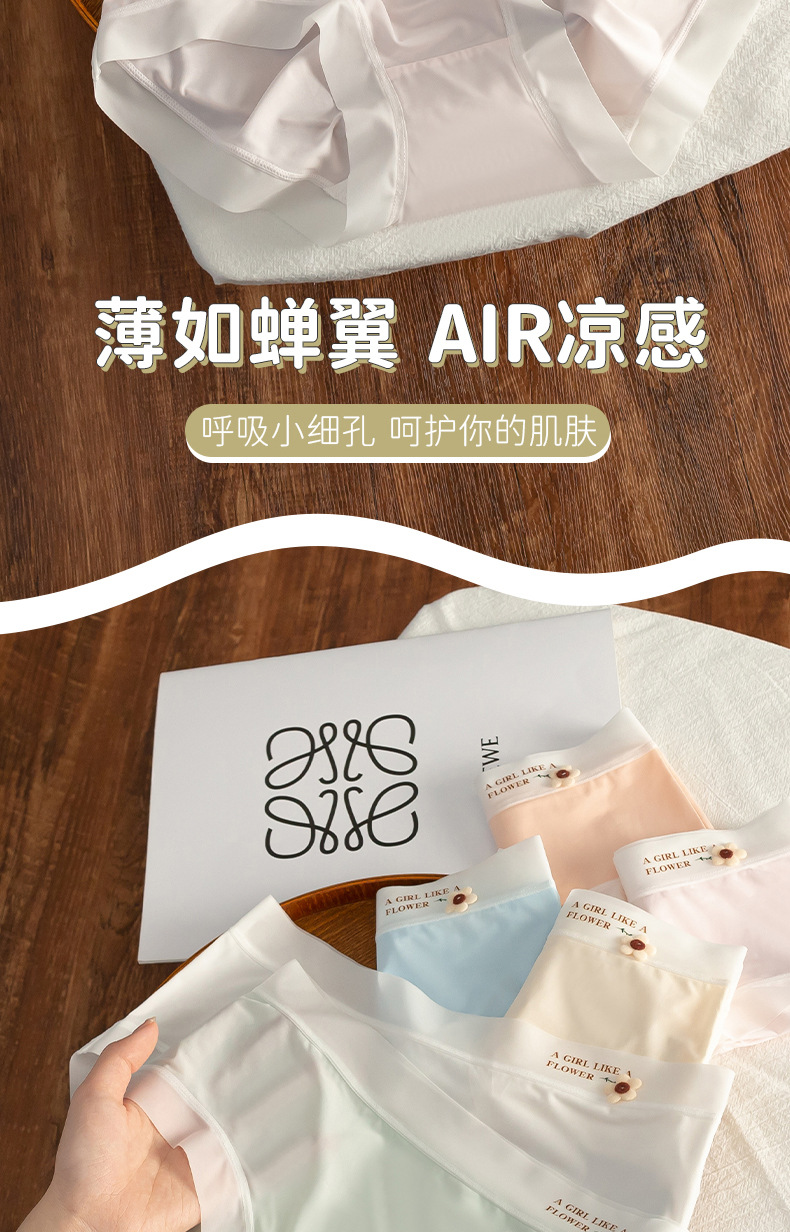 여름 새로운 플러스 사이즈 여자의 아이스 실크 속옷 매일 모든 매치 원활한 꽃 소녀의 삼각형 반바지 면 바닥 가랑이스토어 가기