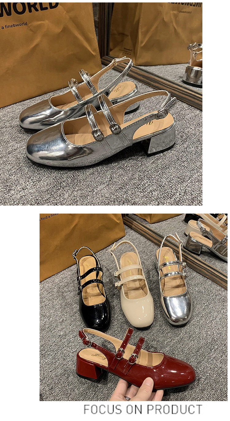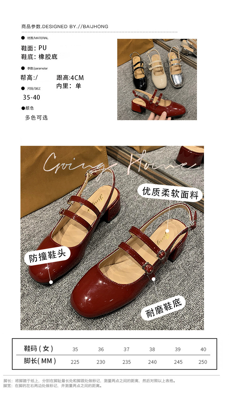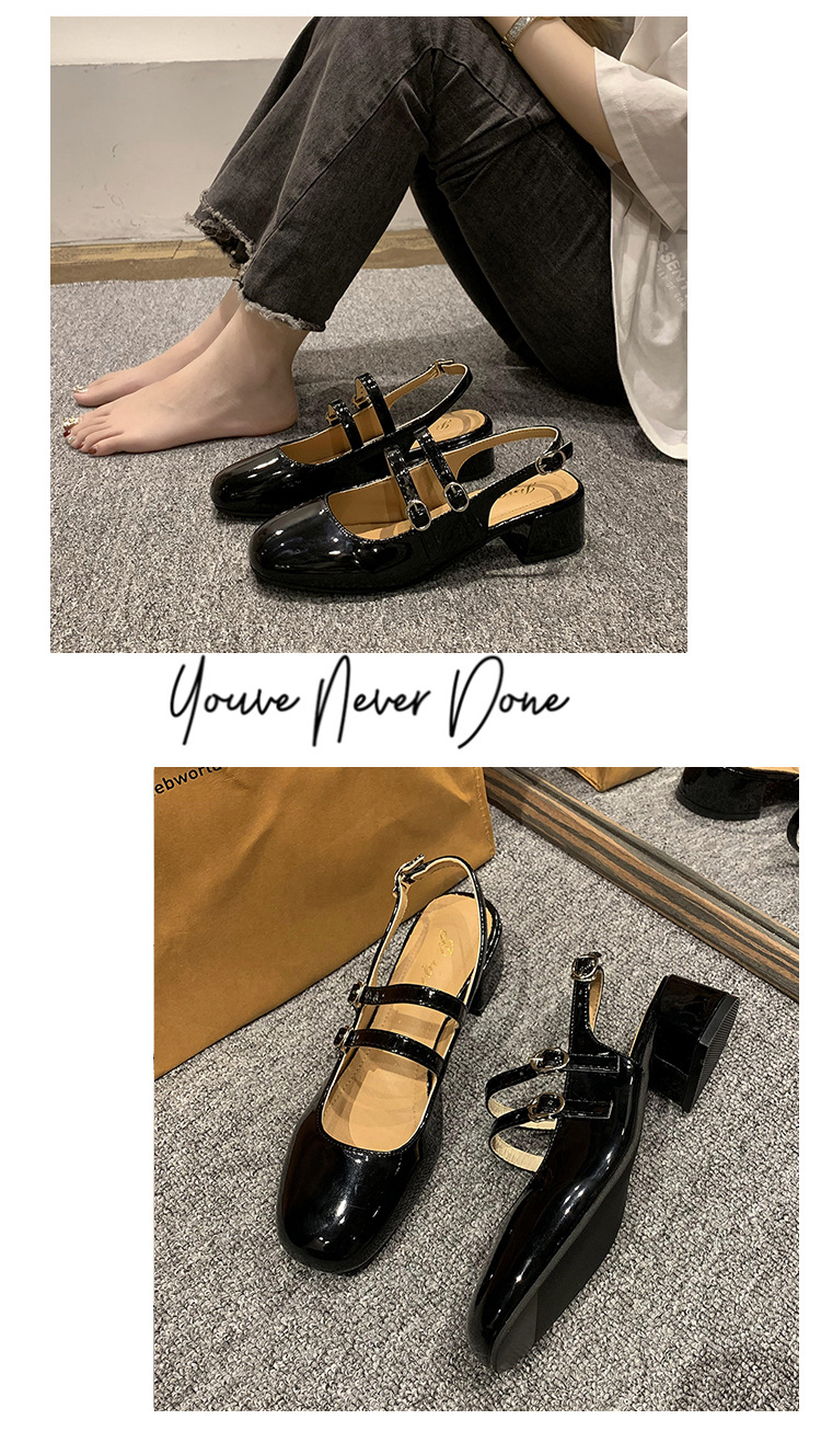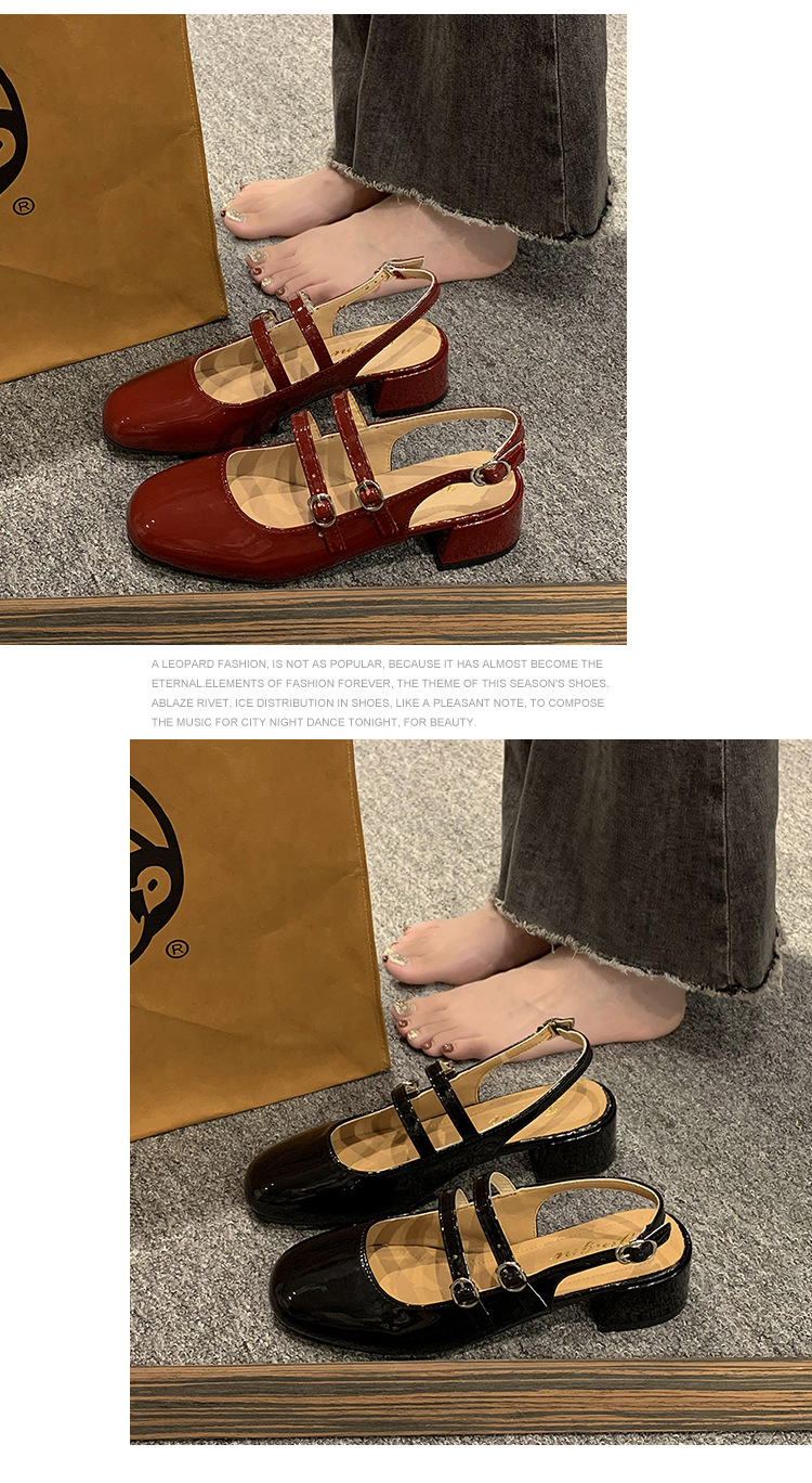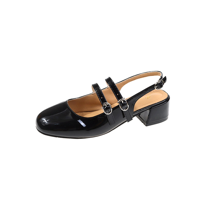 여성 신발 2024 여름 새로운 더블 버클 두꺼운 굽 뒷면 빈 샌들 여성용 얕은 입 요정 스타일 메리 제인 여성 신발스토어 가기
