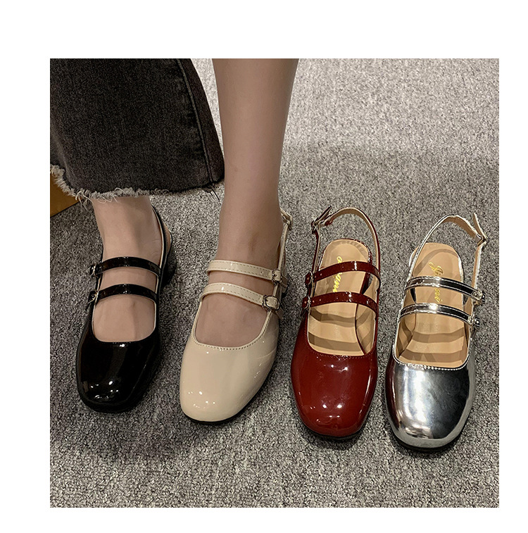 여성 신발 2024 여름 새로운 더블 버클 두꺼운 굽 뒷면 빈 샌들 여성용 얕은 입 요정 스타일 메리 제인 여성 신발