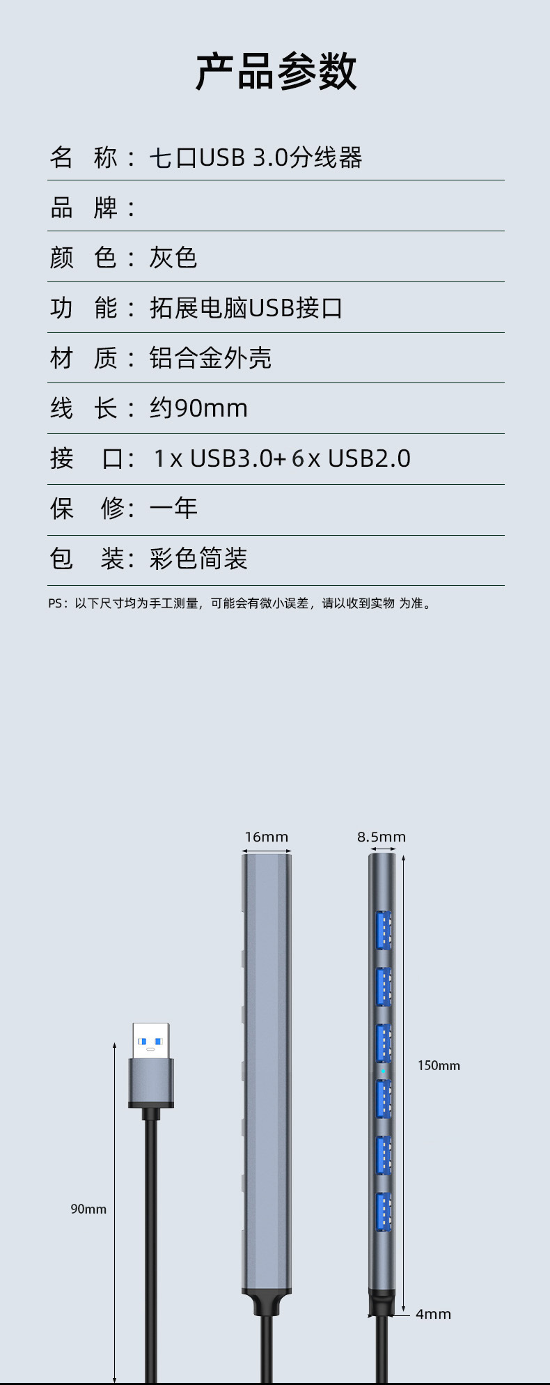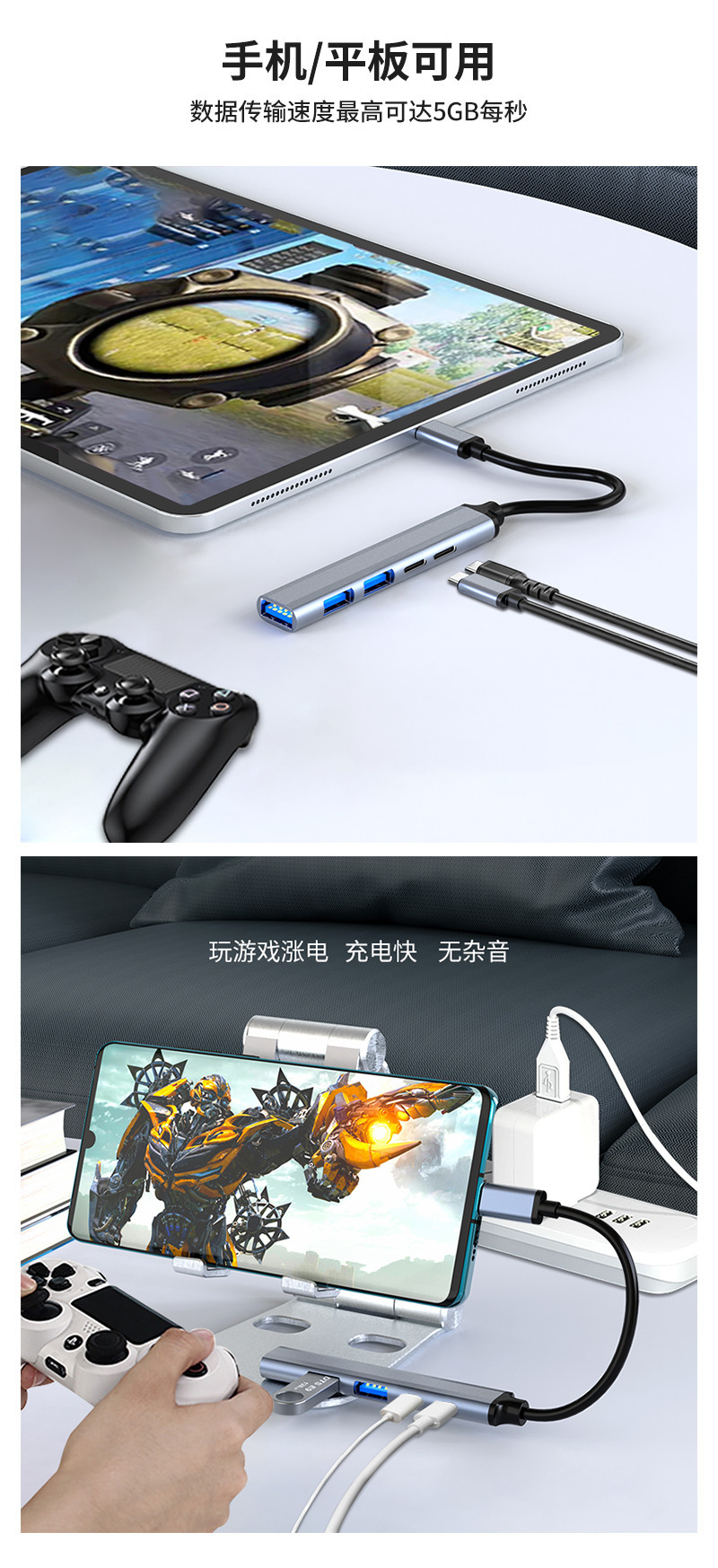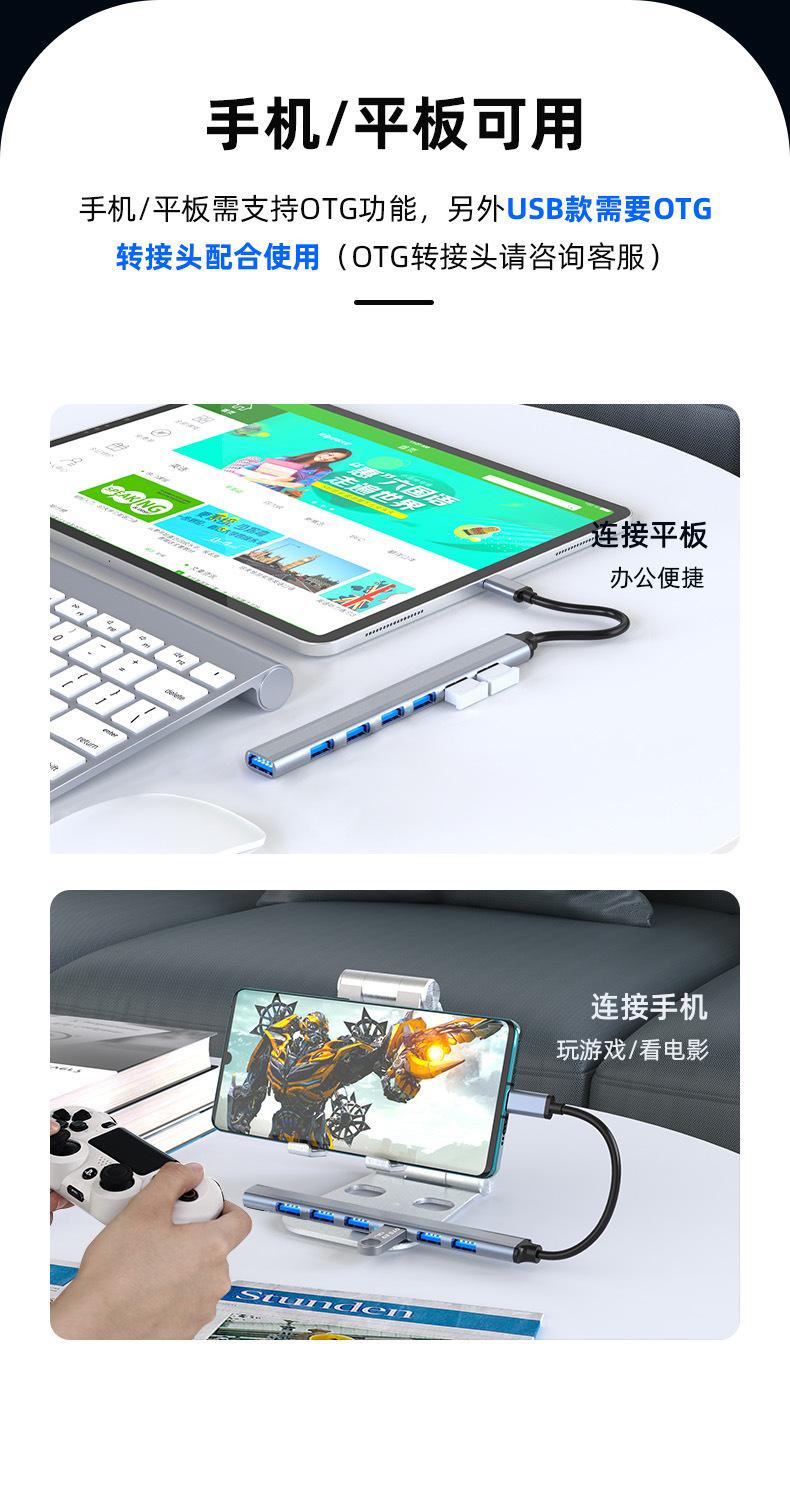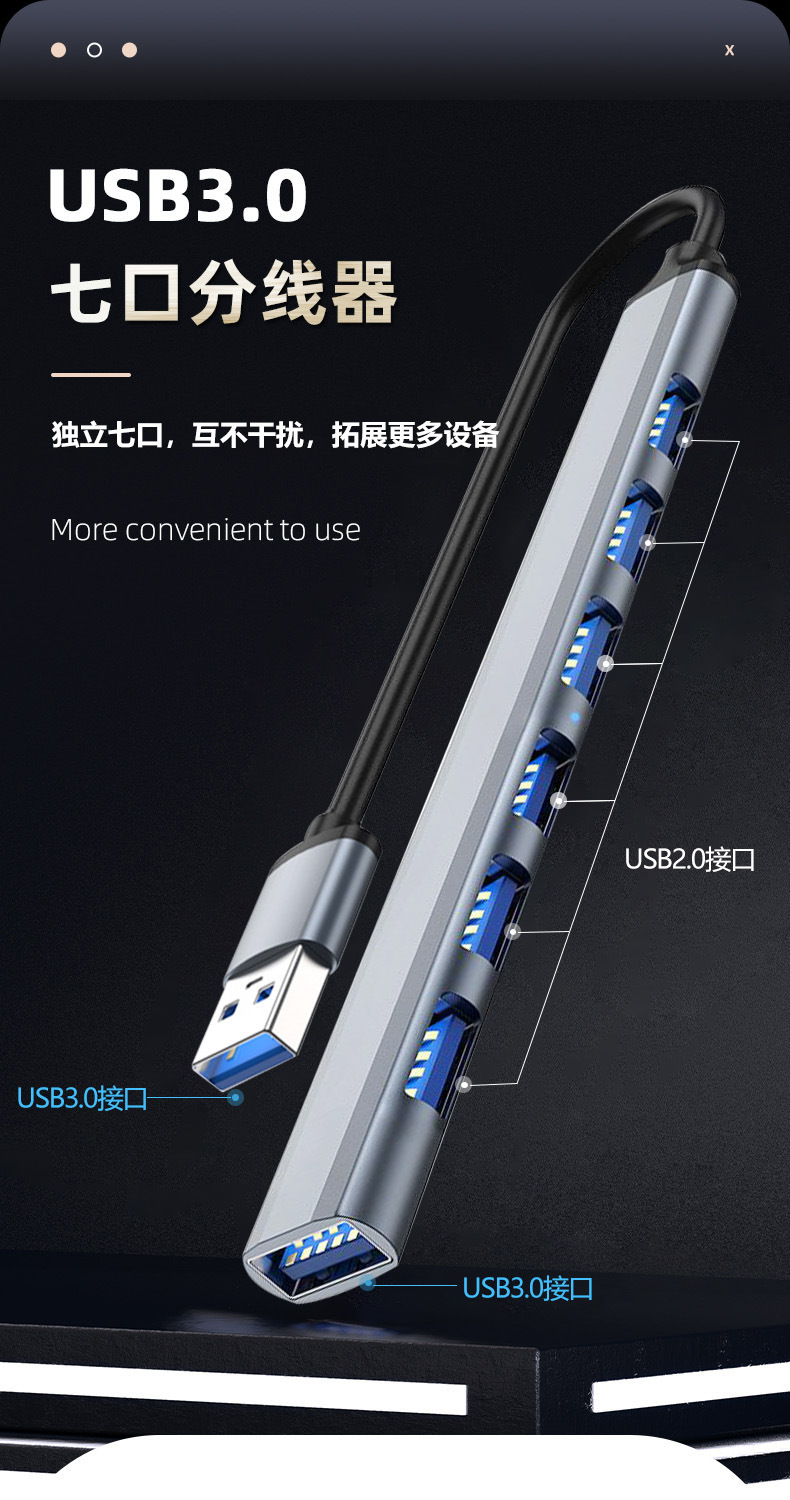 • 투인원 7 포트 usb3.0 + 2.0*4 + pd:5W + usb-c 데이터
