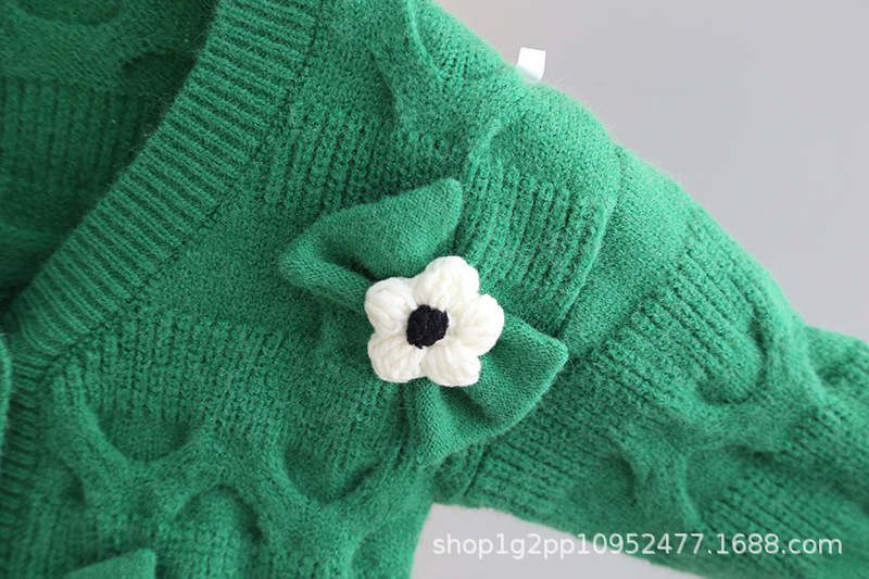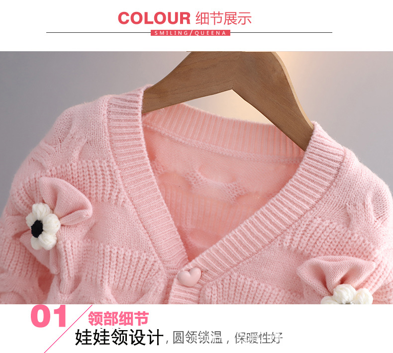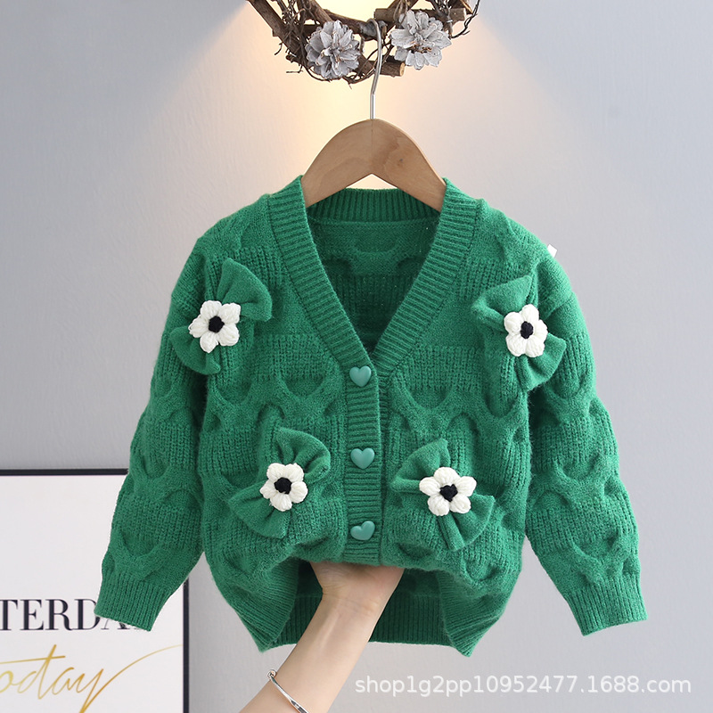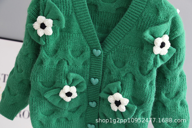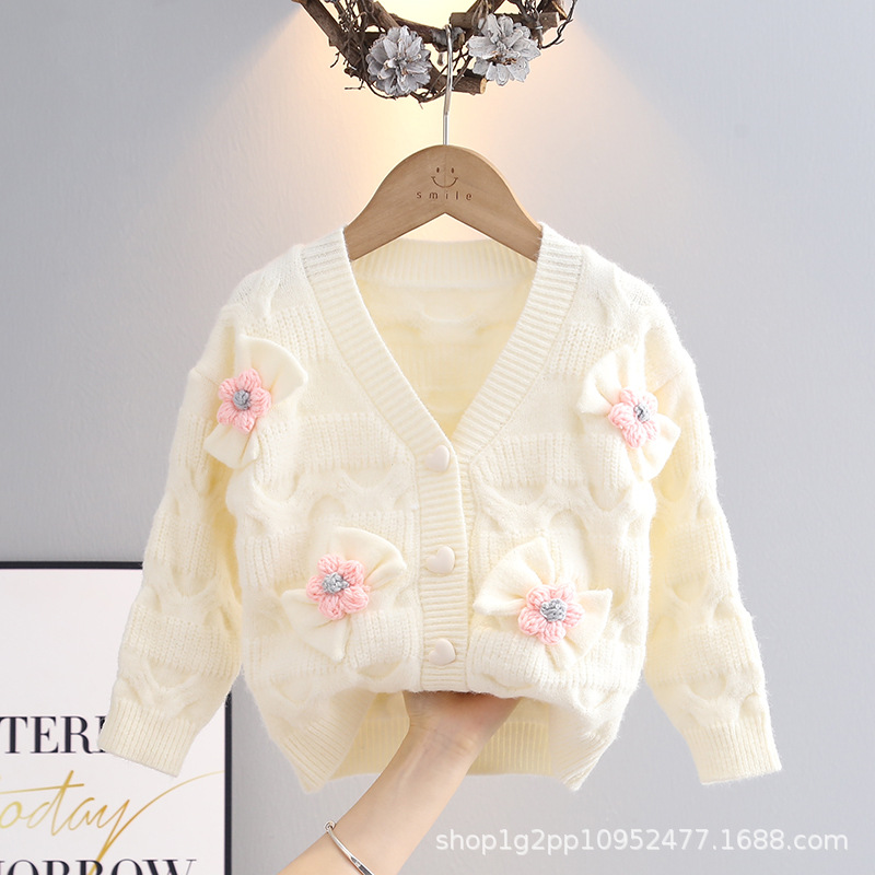 소녀 니트 코트 가을 새로운 외국 스타일 아기 V 넥 카디건 탑 1-6 세 아기 스웨터스토어 가기