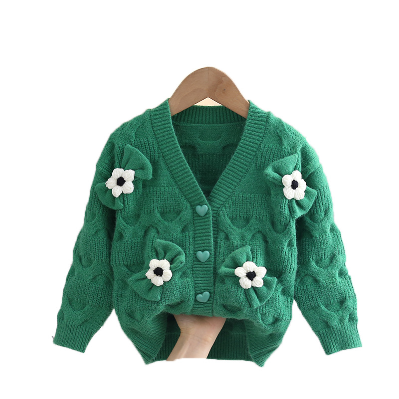 소녀 니트 코트 가을 새로운 외국 스타일 아기 V 넥 카디건 탑 1-6 세 아기 스웨터