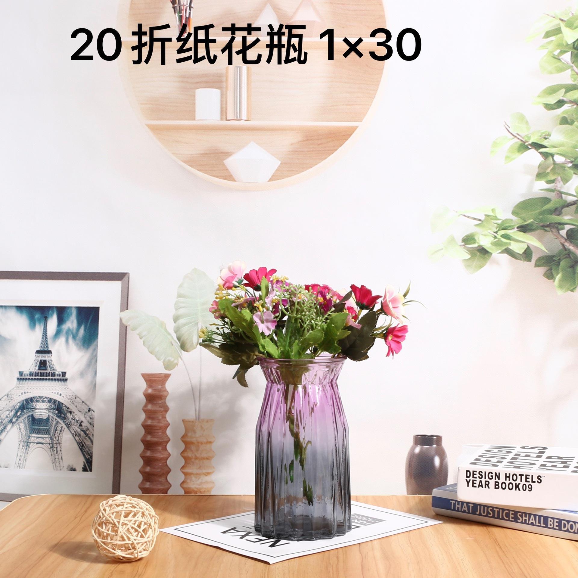 도매 유럽 창조적 인 그라디언트 투명 종이 접기 유리 꽃병 수경 꽃 거실 가정 장식 병 장식품스토어 가기