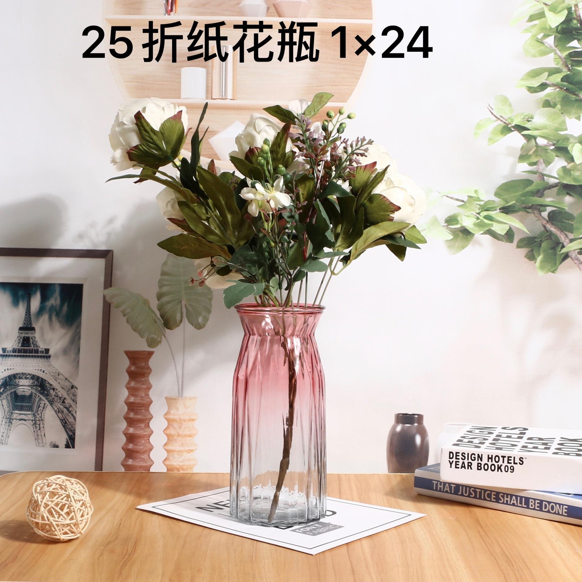 도매 유럽 창조적 인 그라디언트 투명 종이 접기 유리 꽃병 수경 꽃 거실 가정 장식 병 장식품