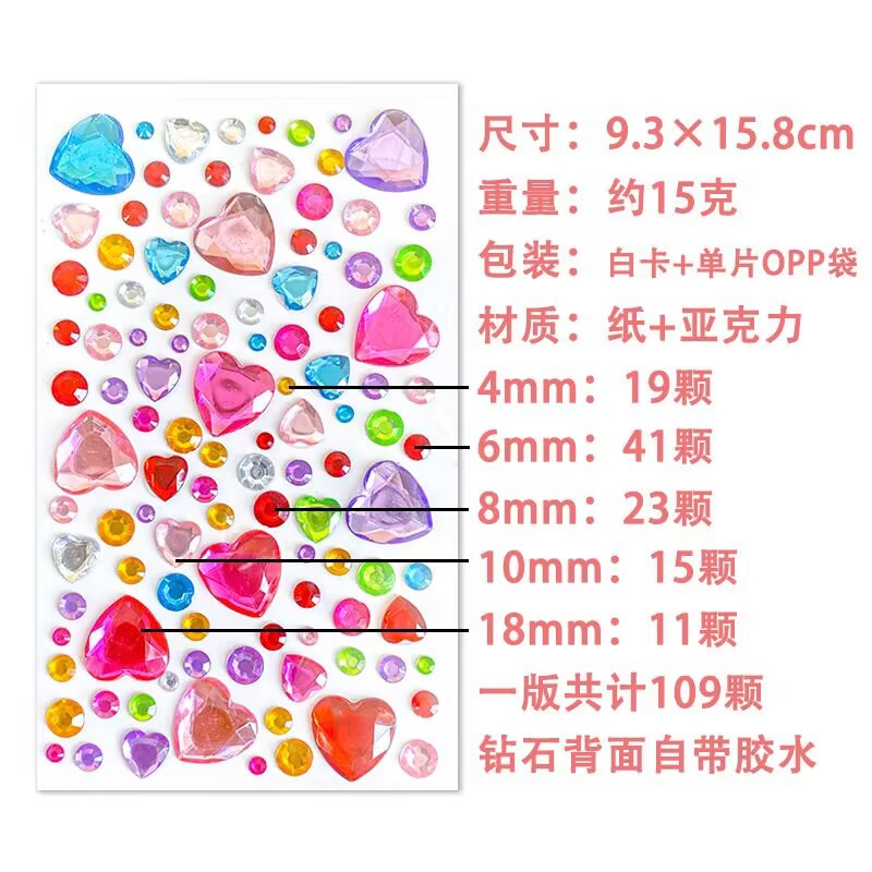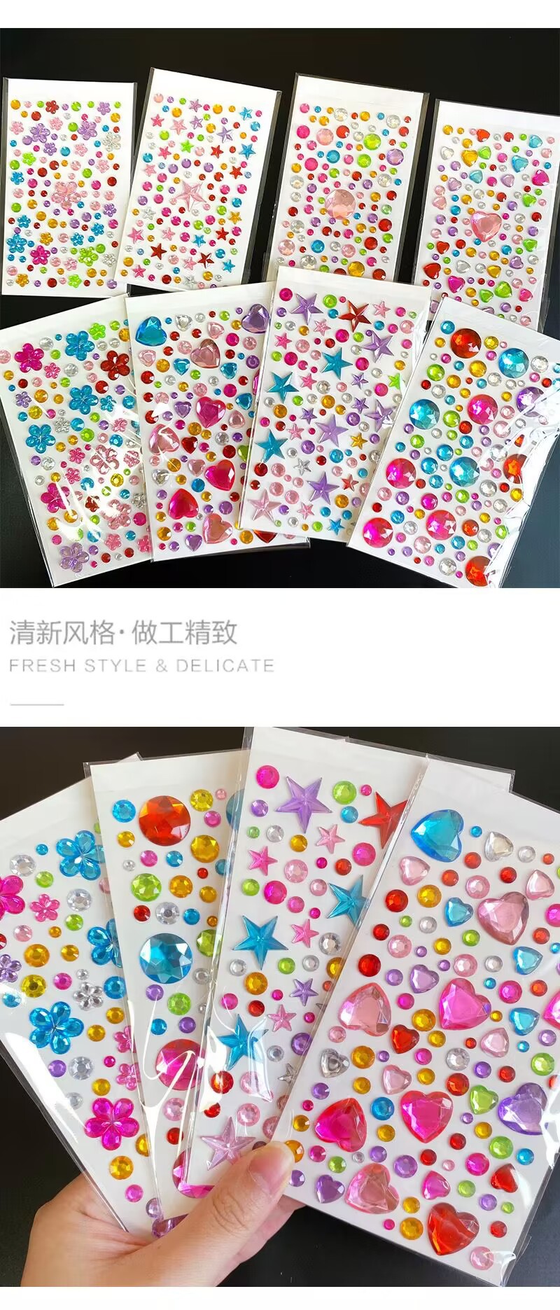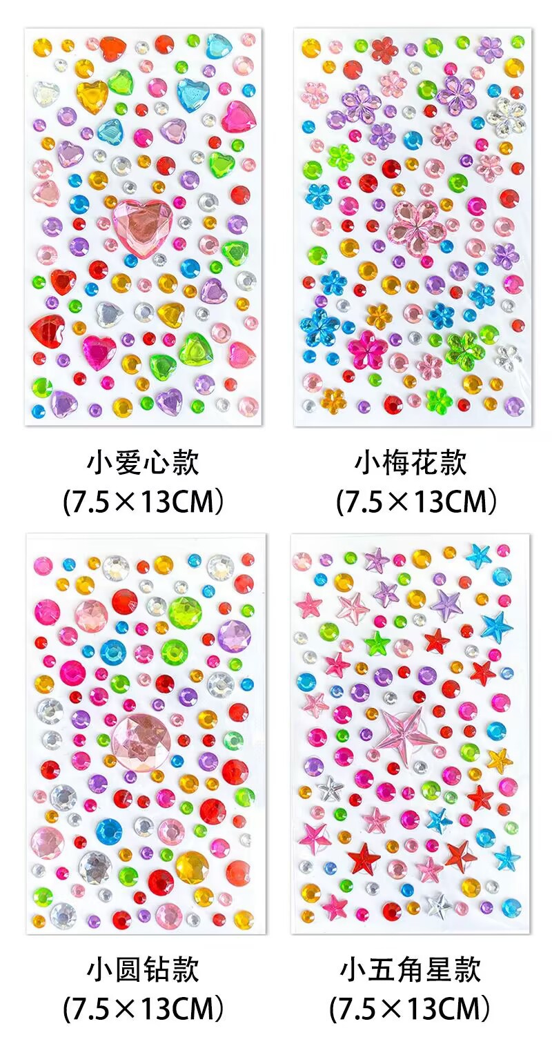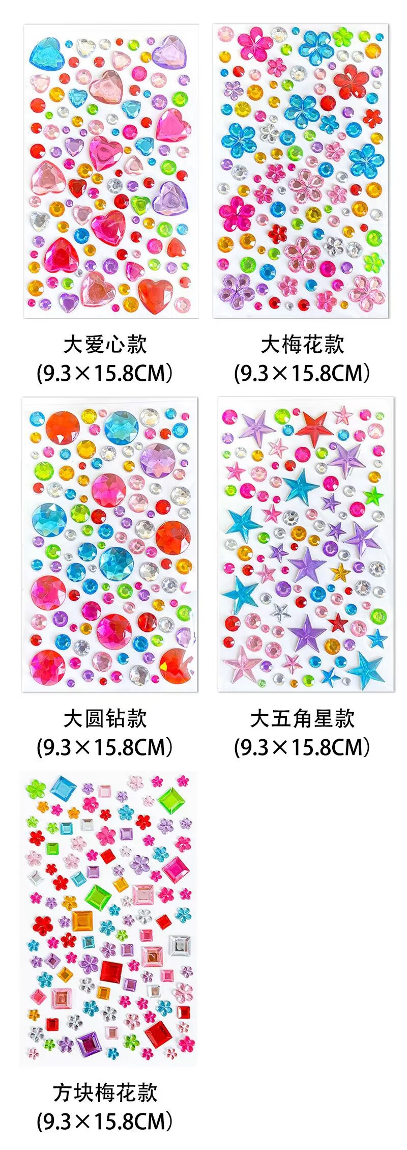 보석 시리즈 스티커 어린이 공주 만화 다이아몬드 아크릴 매화 라운드 사랑 DIY 보상 스티커 도매