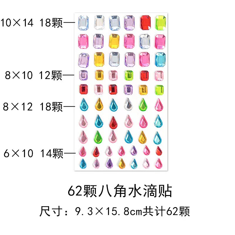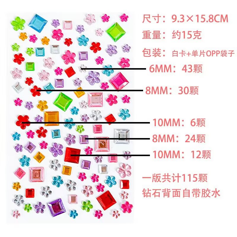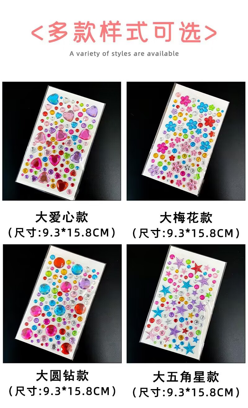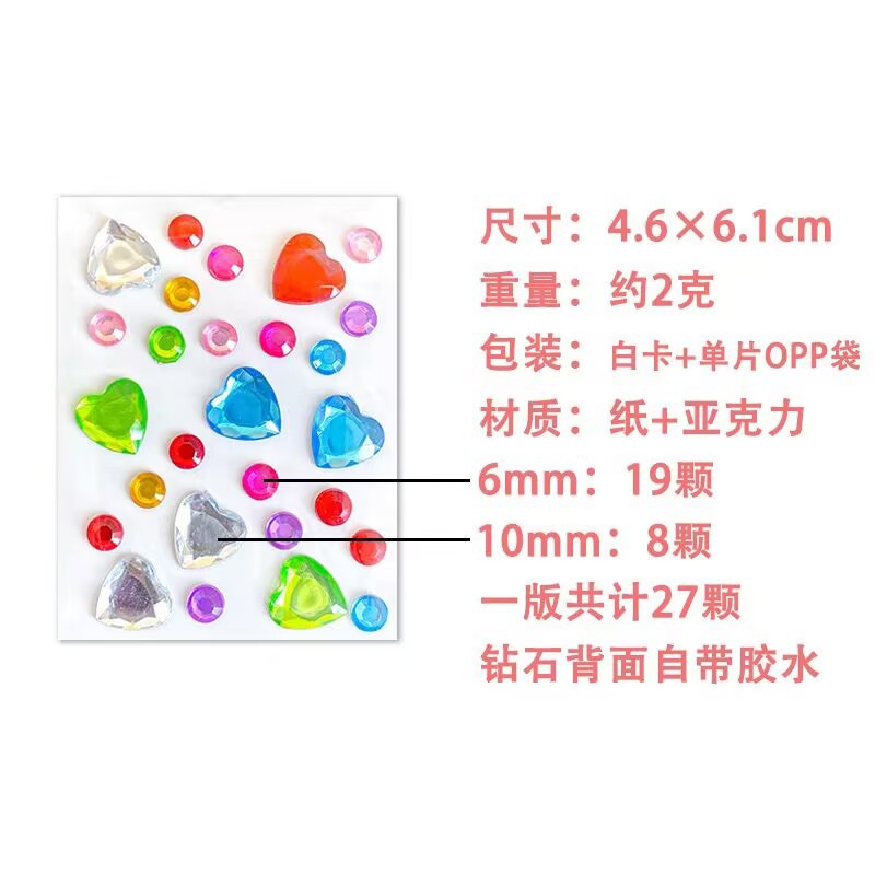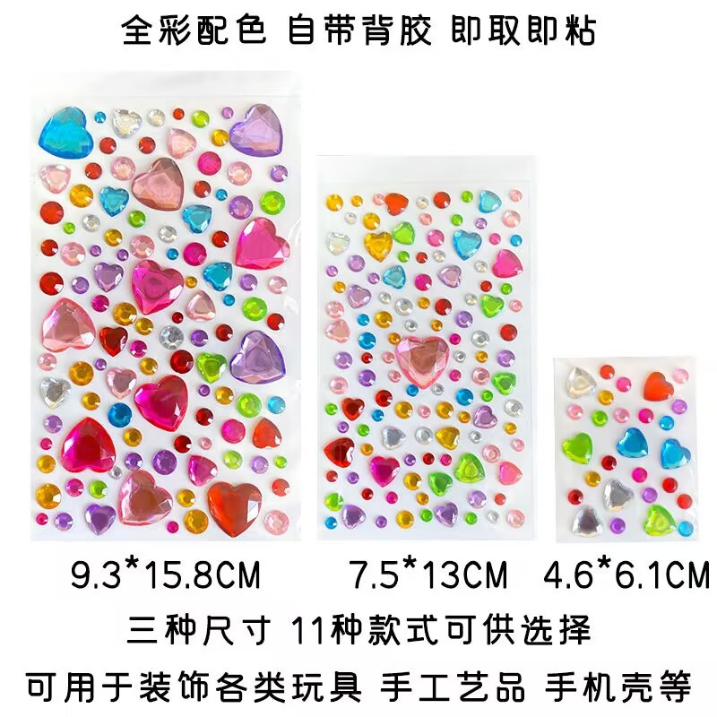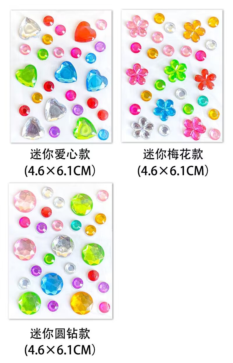 보석 시리즈 스티커 어린이 공주 만화 다이아몬드 아크릴 매화 라운드 사랑 DIY 보상 스티커 도매