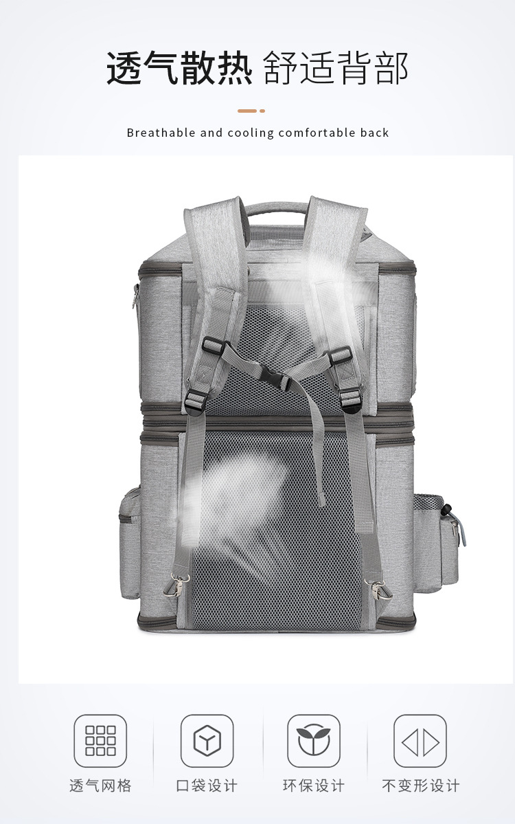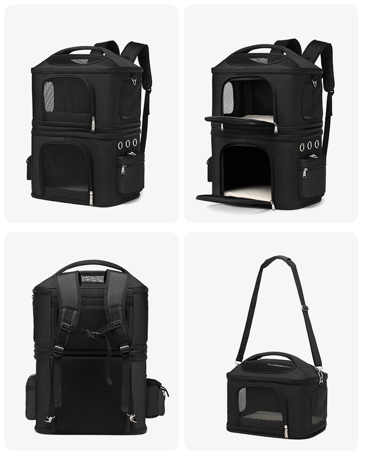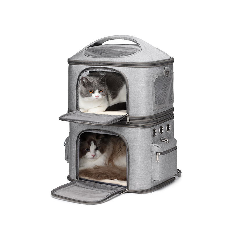 국경을 넘는 이중층 애완동물 백팩, 고양이 가방, 외출용 휴대용 대용량, 통기성이 좋고 분리 및 접이식이 가능한 두 마리용 애완동물 가방